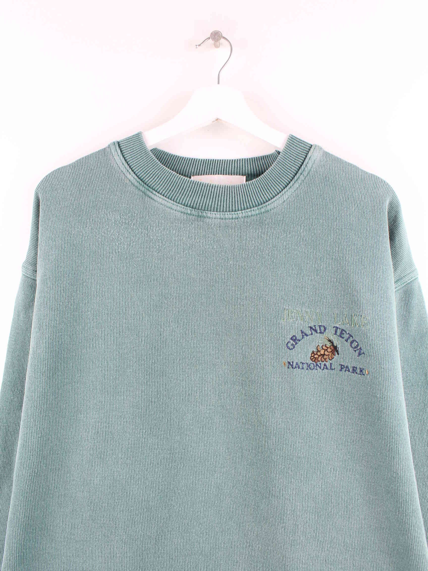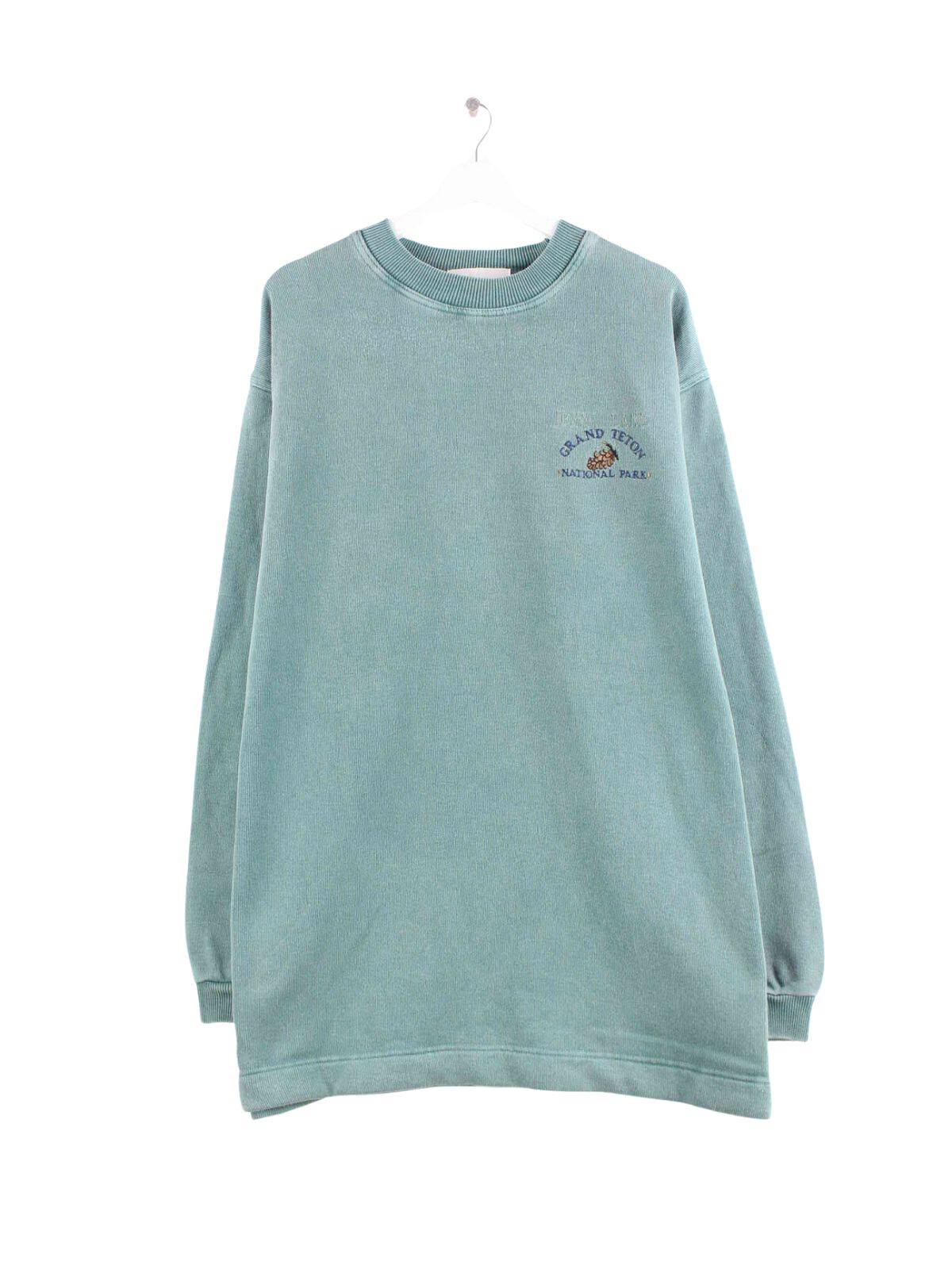 Vintage sweater with embroidery in size XL from the 90s. It is made from a cotton blend and is available in green.