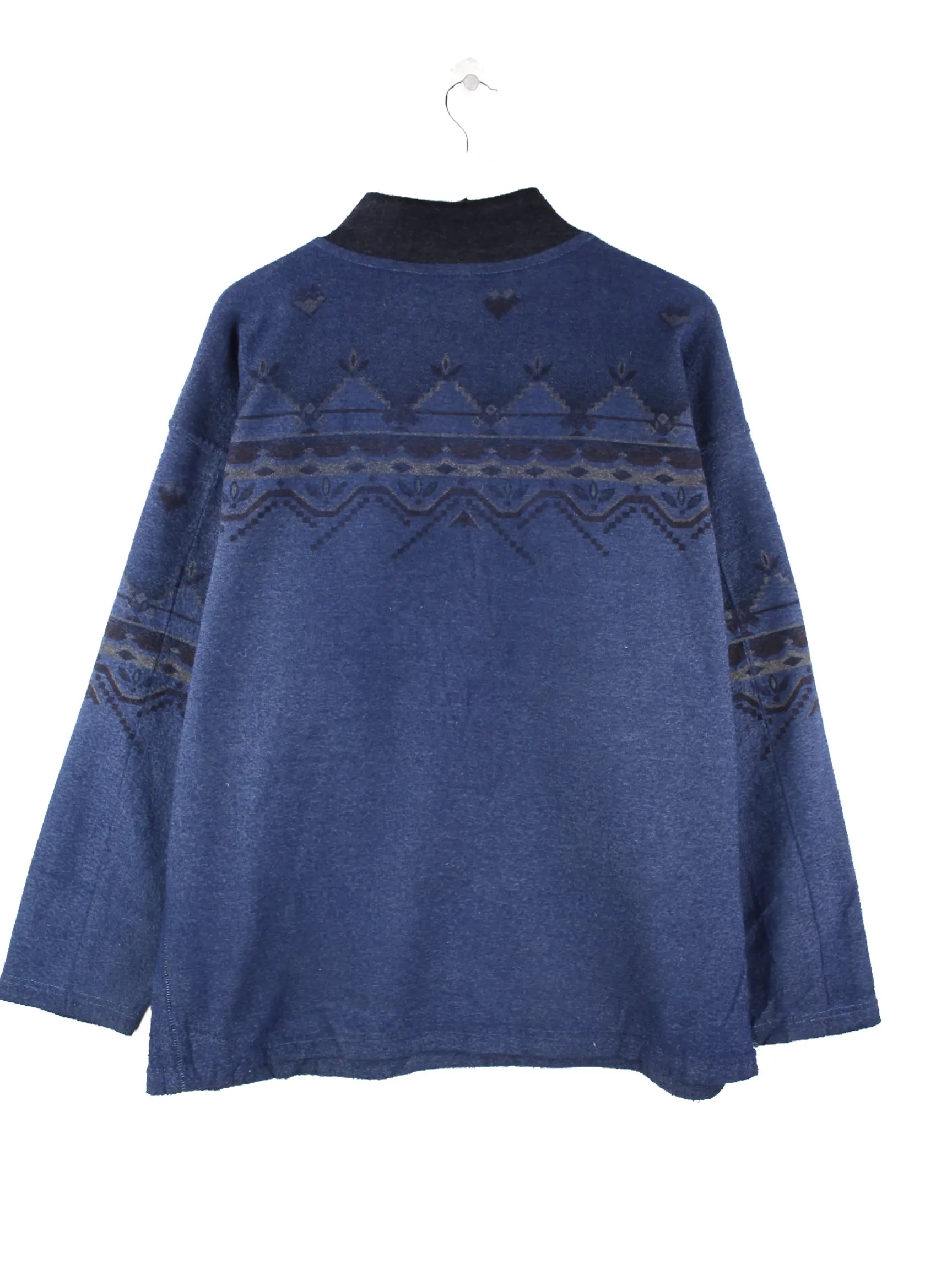 Vintage Sweater mit kurzem Reißverschluß in Größe XL aus den 90'ern. Er ist aus behaglichem Fleece produziert und in Blau im Bestand.