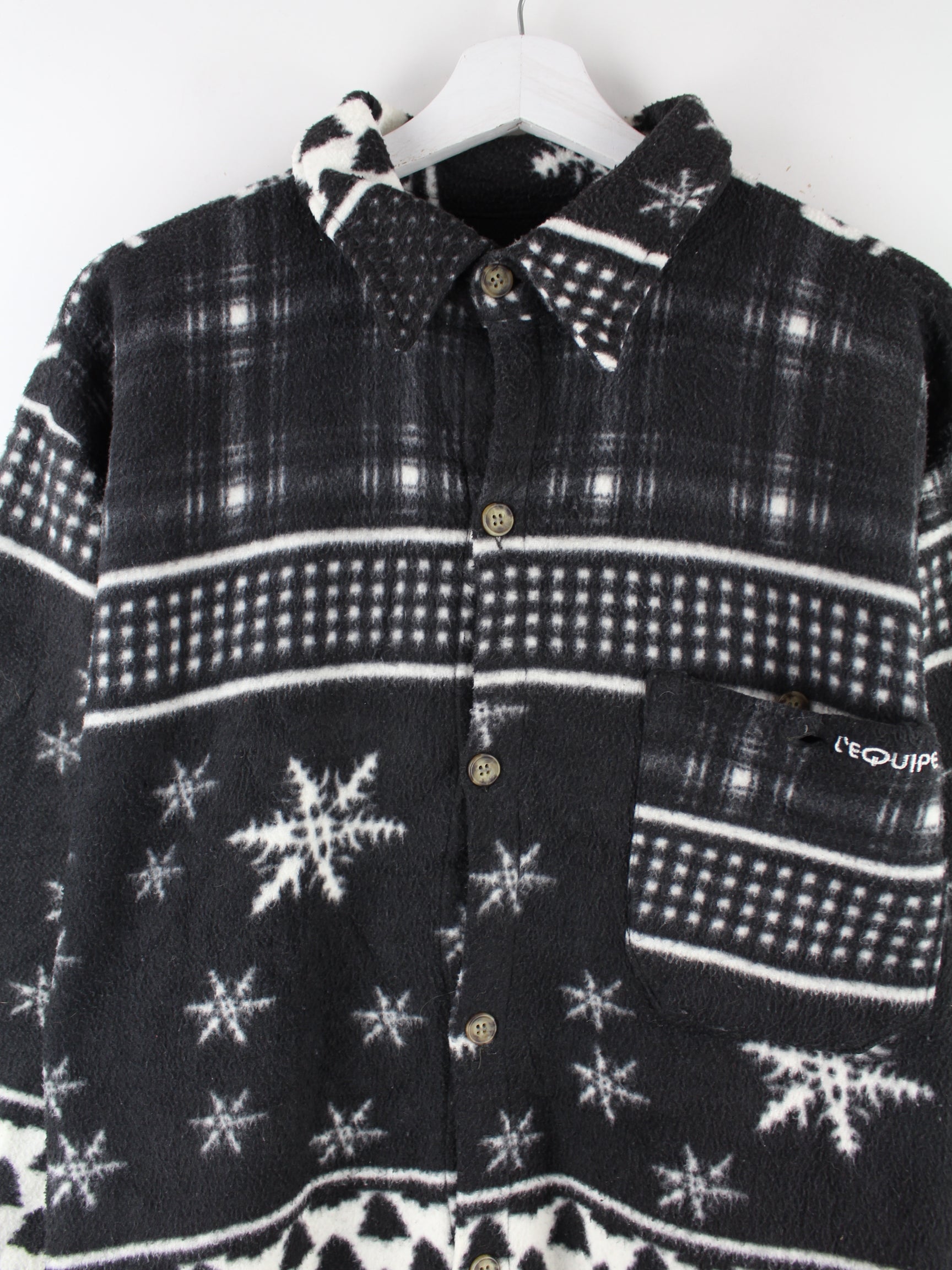Graues Vintage Freizeit Hemd aus den 90'ern in Größe M. Es ist aus gemütlichem Fleece hergestellt und in sehr gutem Zustand auf Lager.