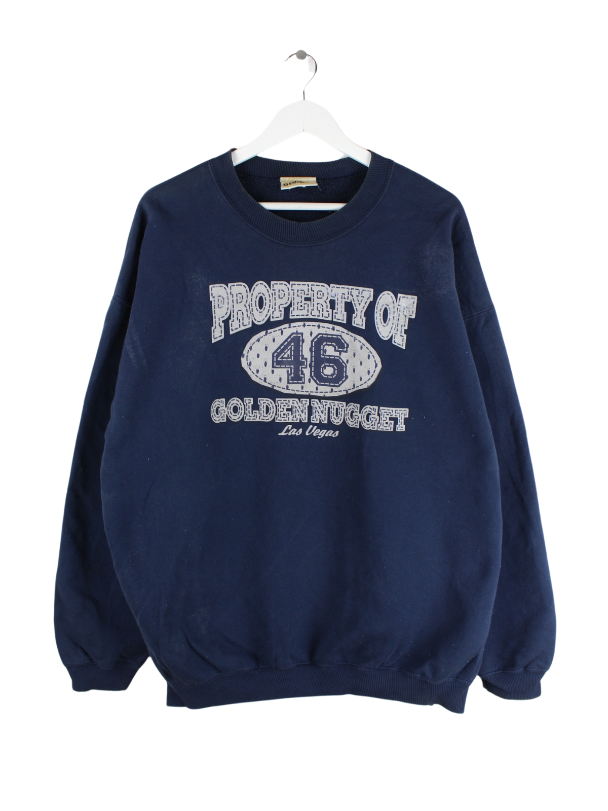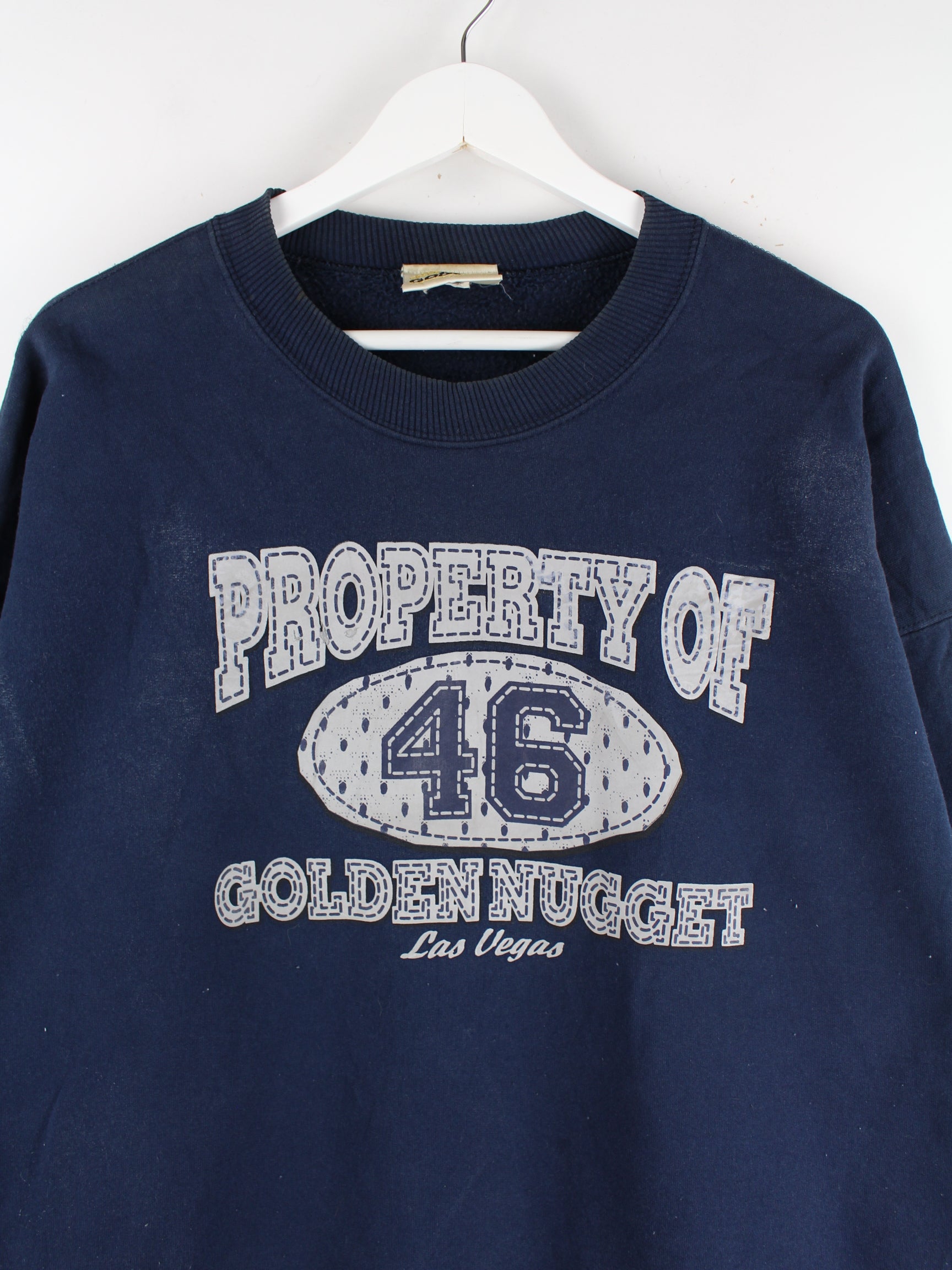 Vintage 90s Golden Nugget Print Heavy Sweater Blau XL