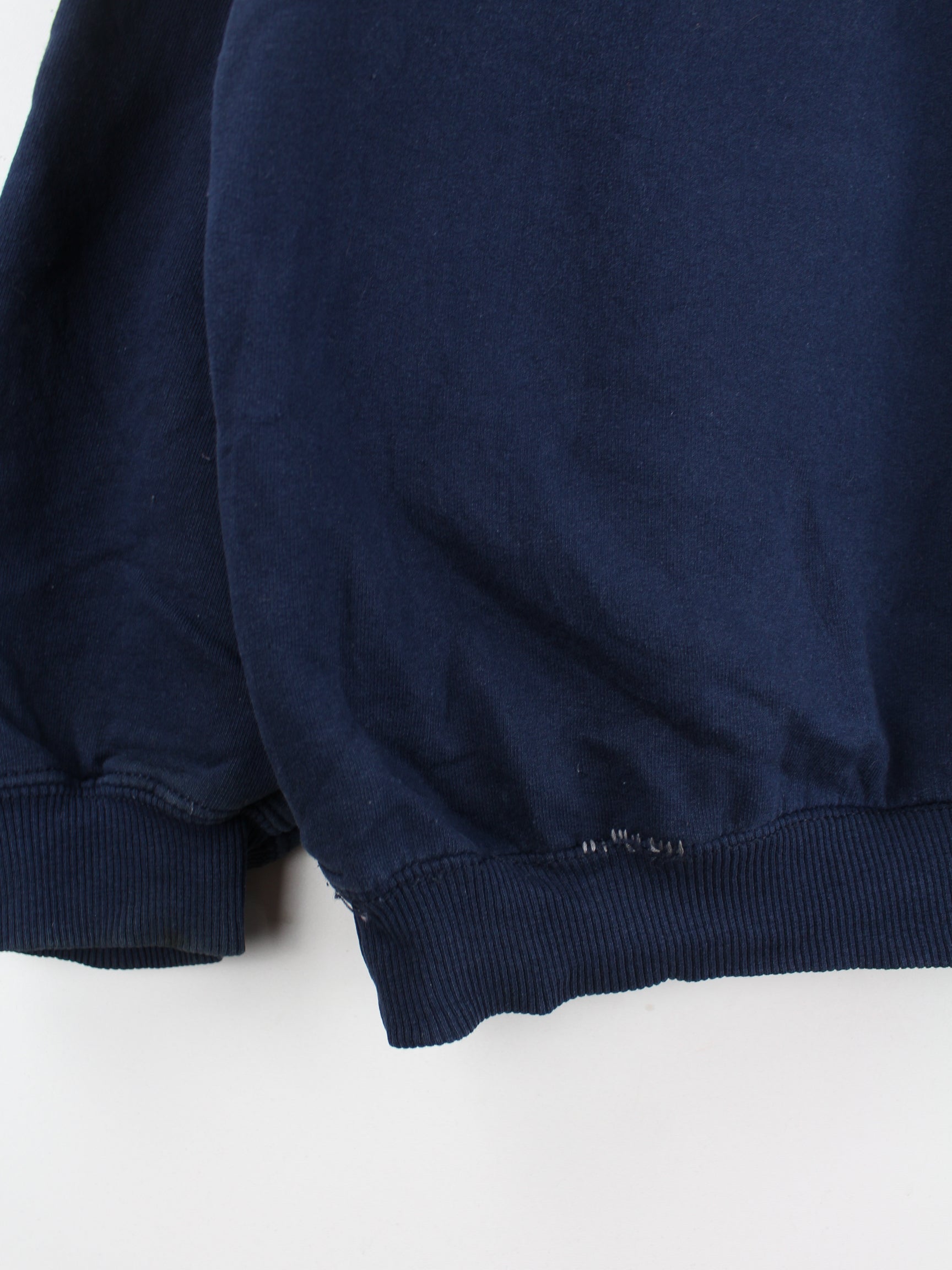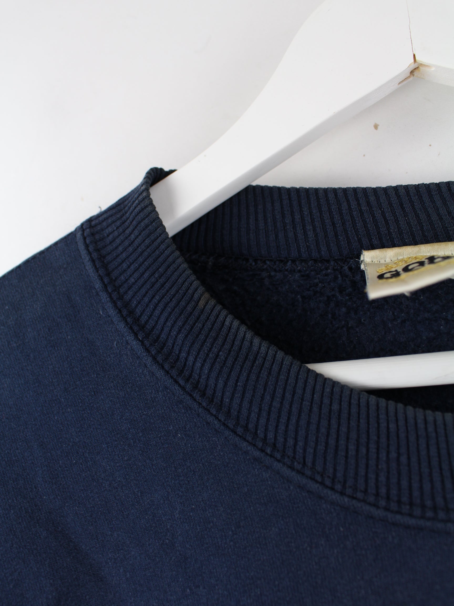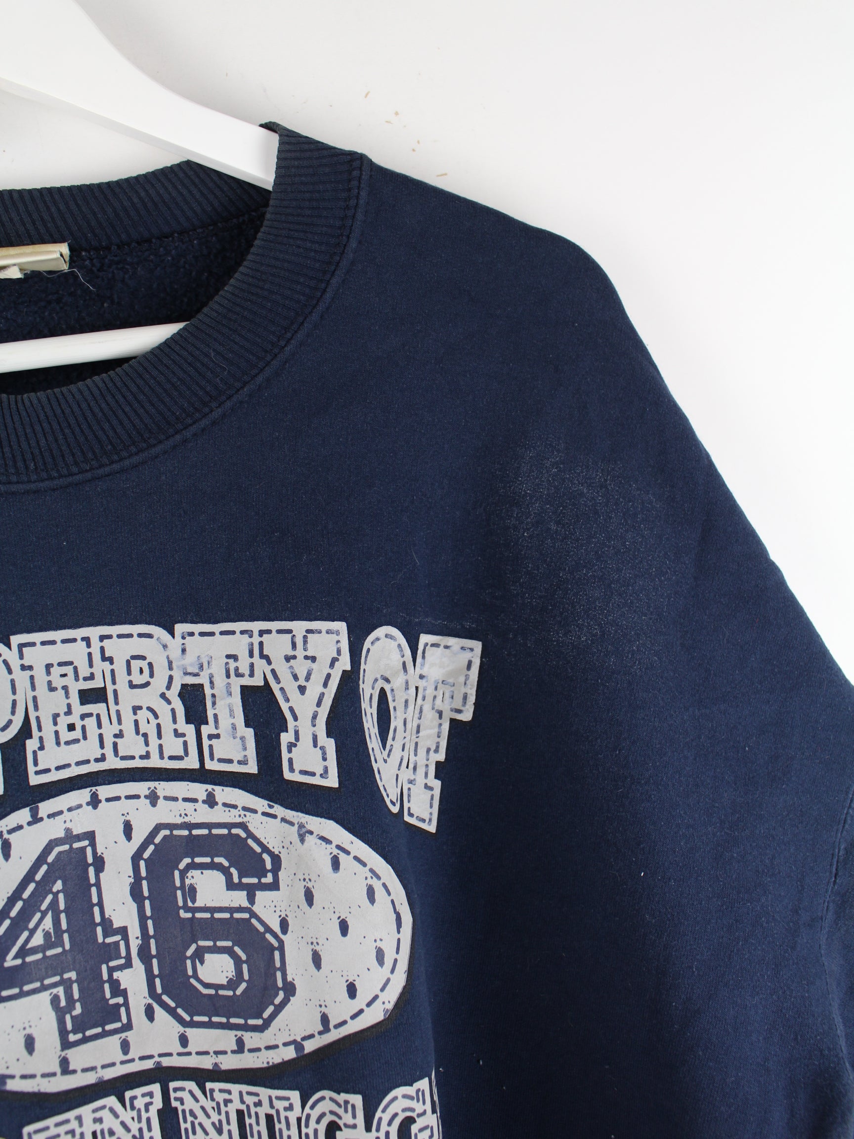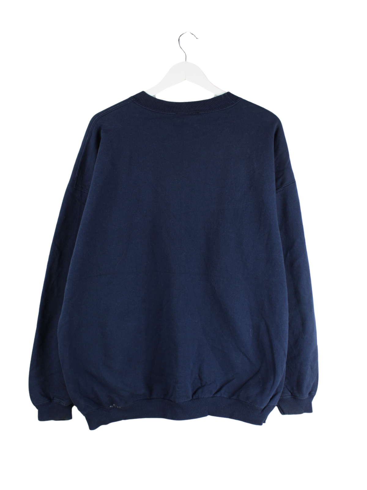 Blauer Vintage Sweater aus den 90'ern in Größe XL. Er ist aus einer Baumwollmischung angefertigt. Den Zustand würden wir als 'In Ordnung' bezeichnen (vergl. Bilder).Mit schickem Nugget Print.