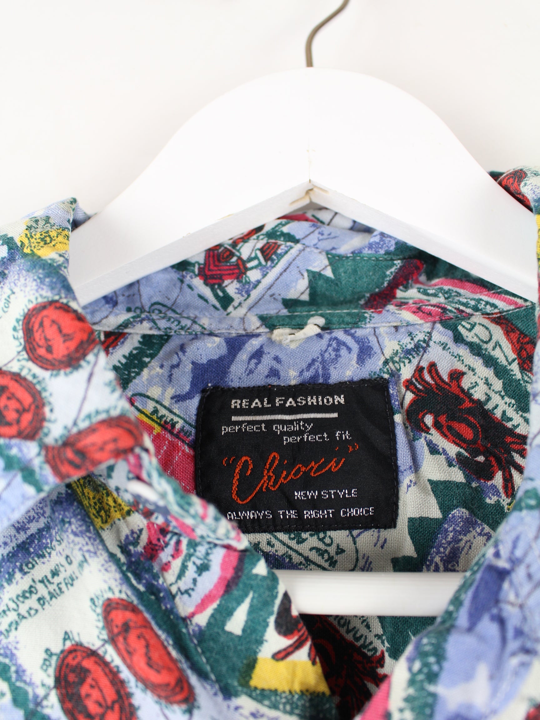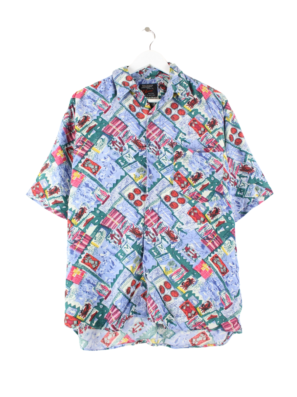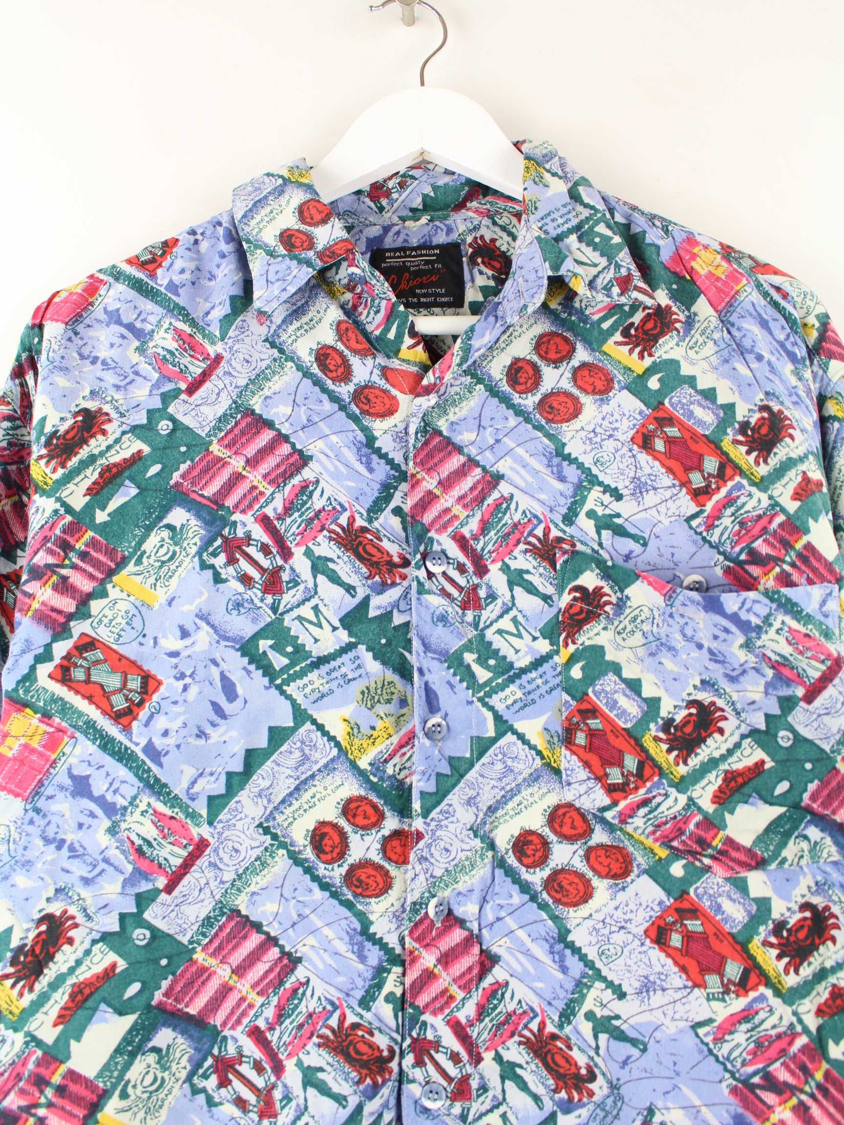 Multi-colored vintage leisure shirt from the 90's in size L. It is made from a cotton blend and is in very good condition.
