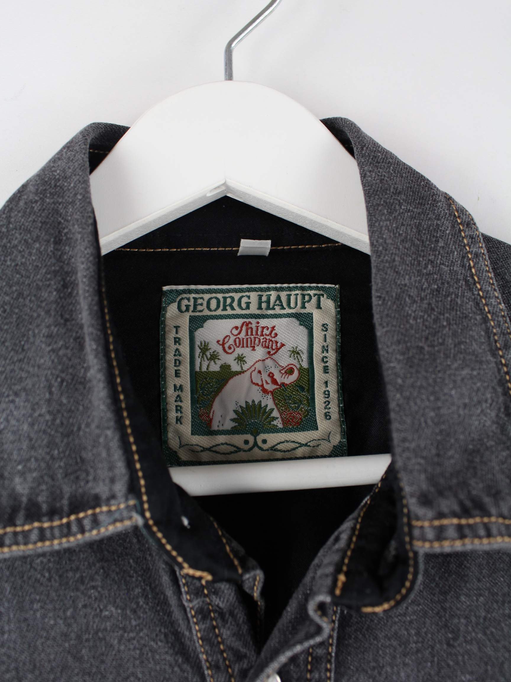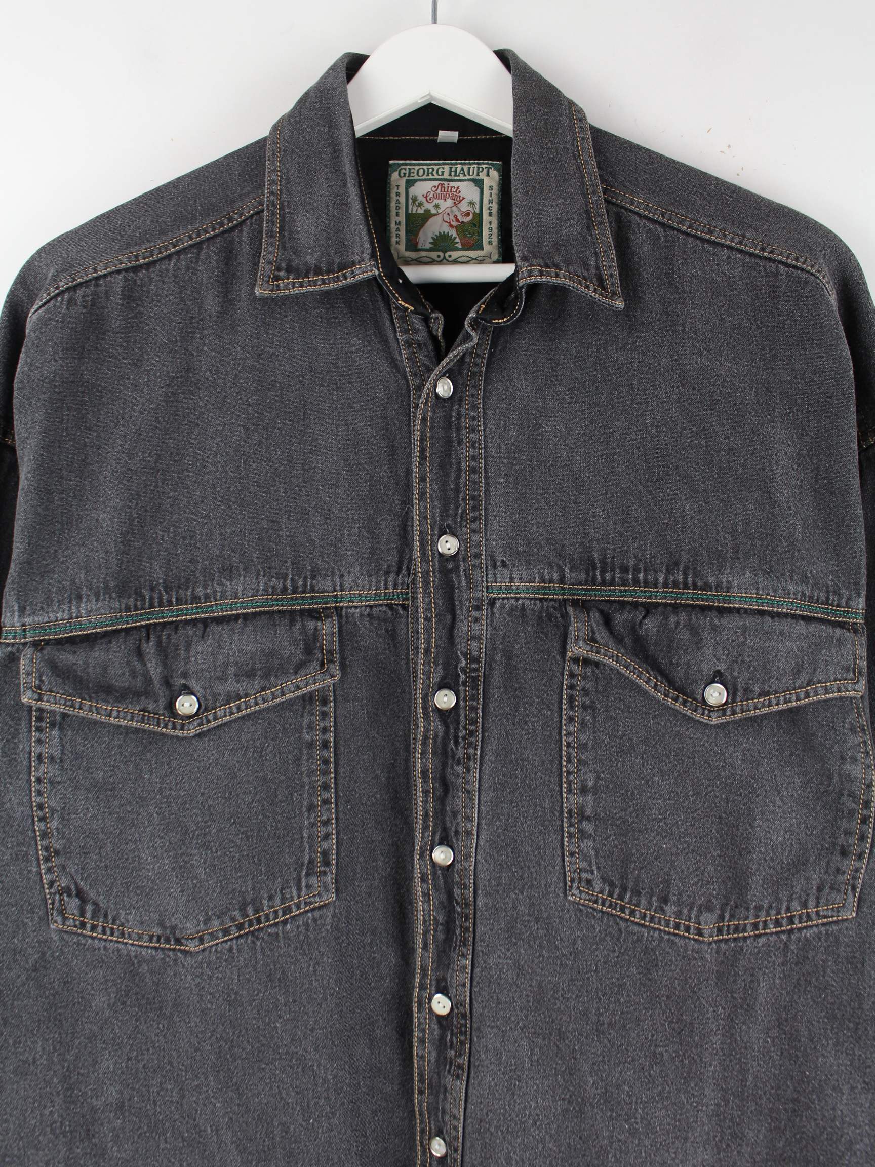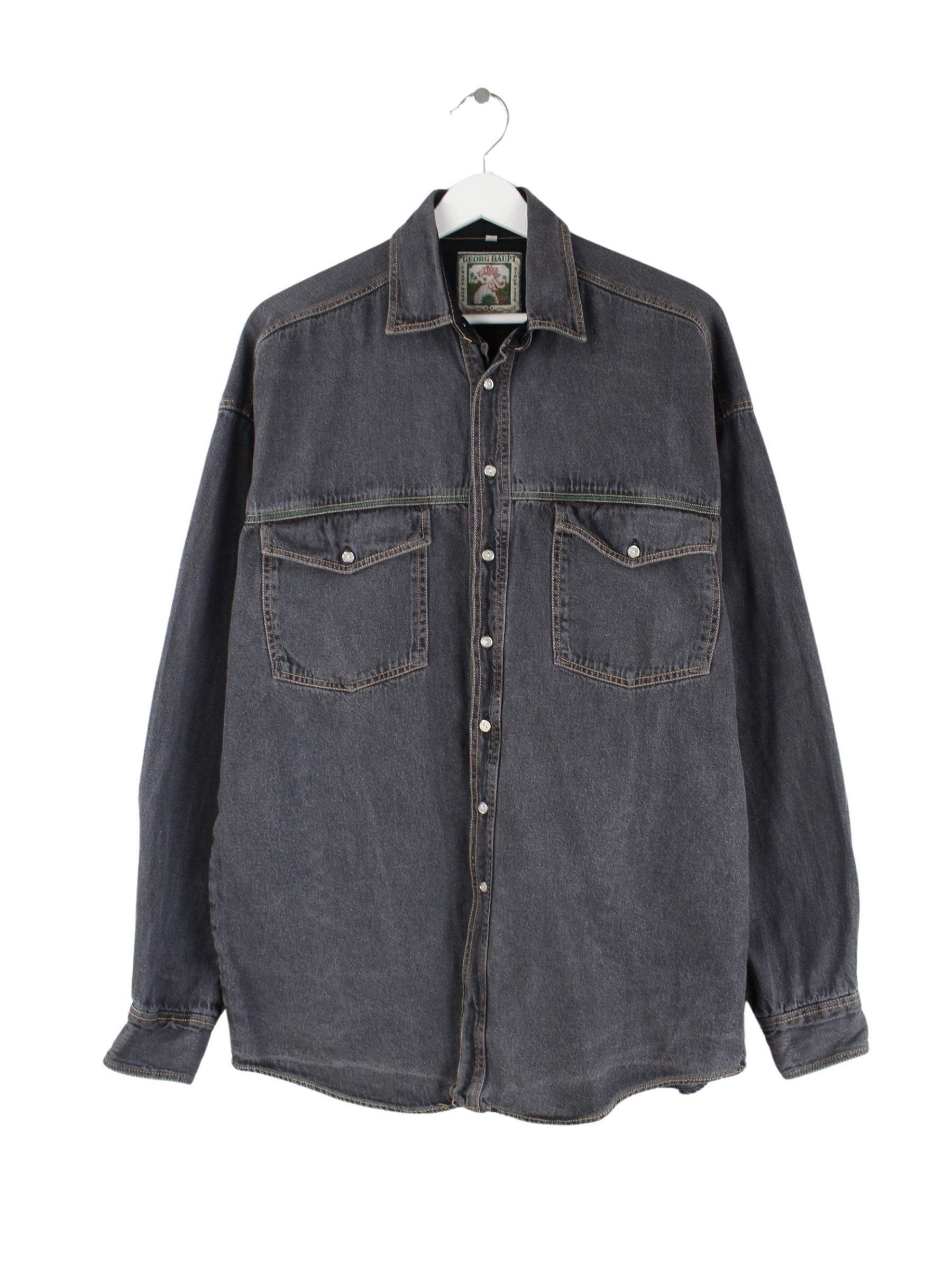 Graues Vintage Freizeit Hemd aus den 90'ern in Größe L. Es ist aus Baumwolle und in sehr gutem Zustand bei uns vorrätig.