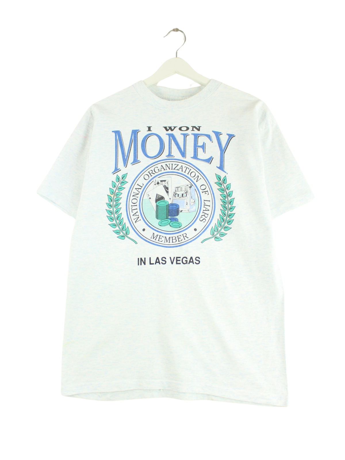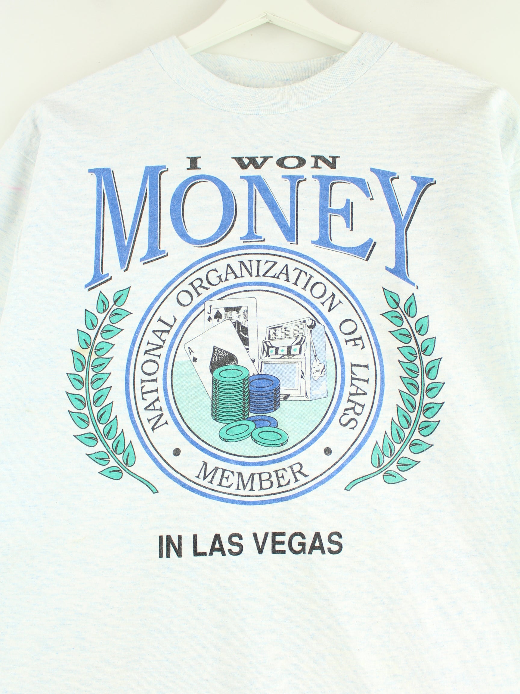 Vintage 90s Las Vegas Money Print Single Stitch T-Shirt Blue L