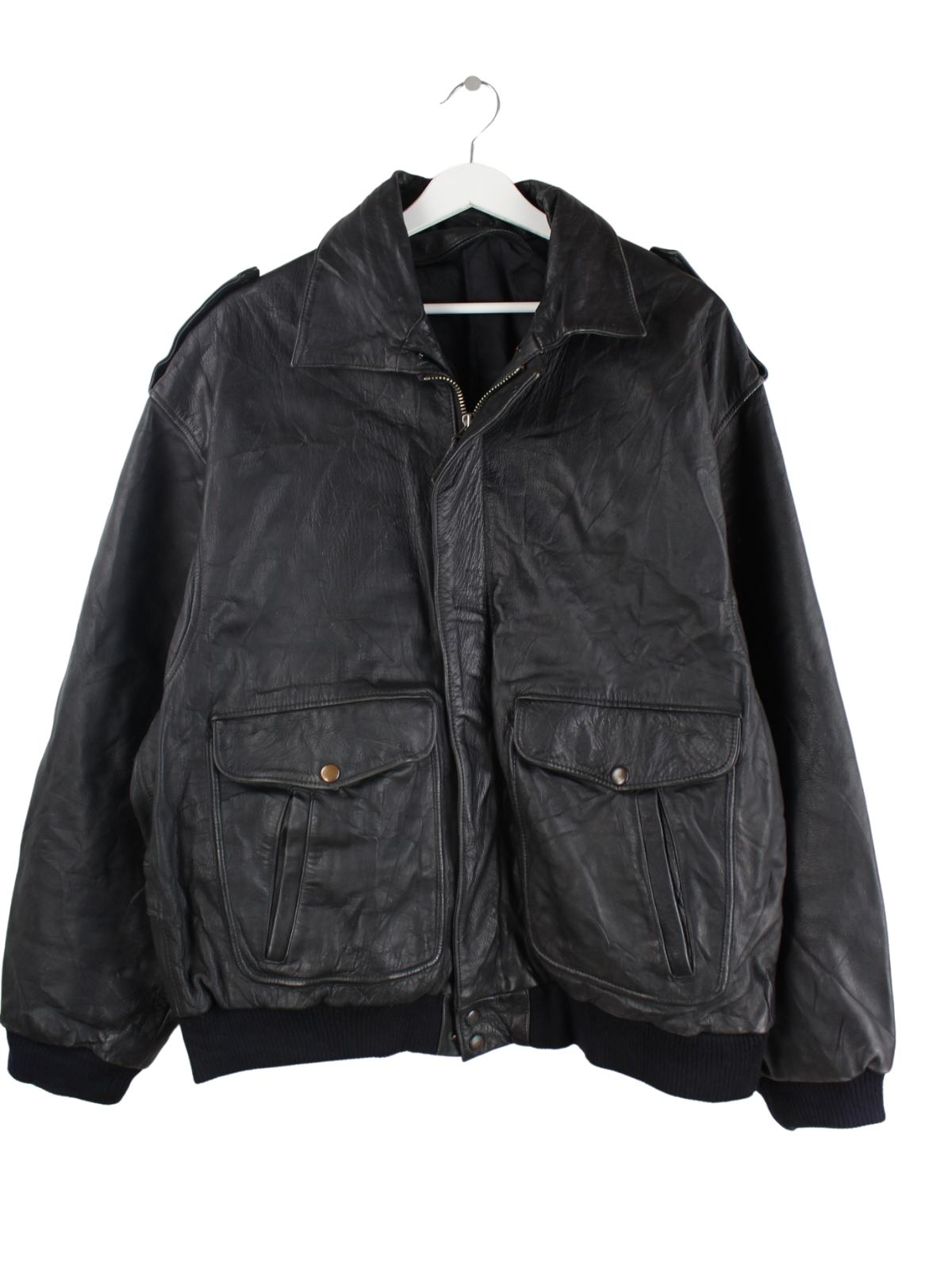 Vintage 90s Leder Bomber Jacke Schwarz XL