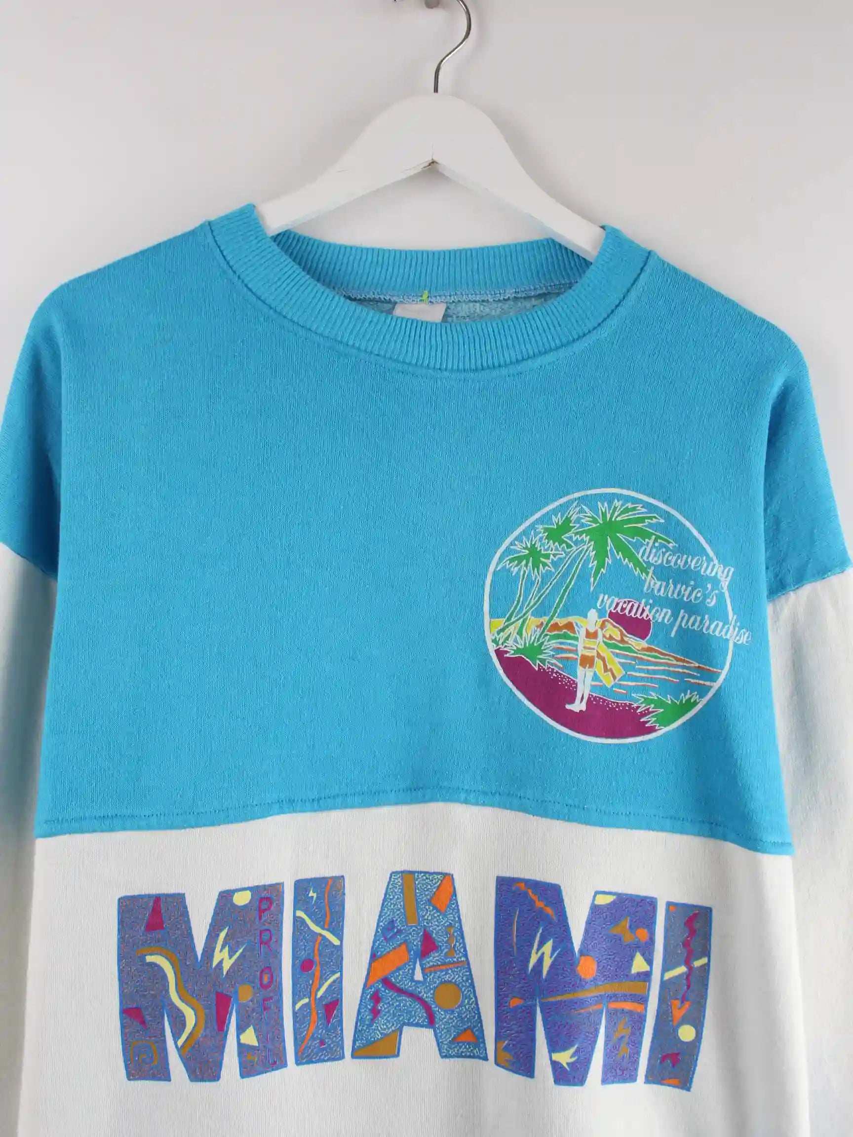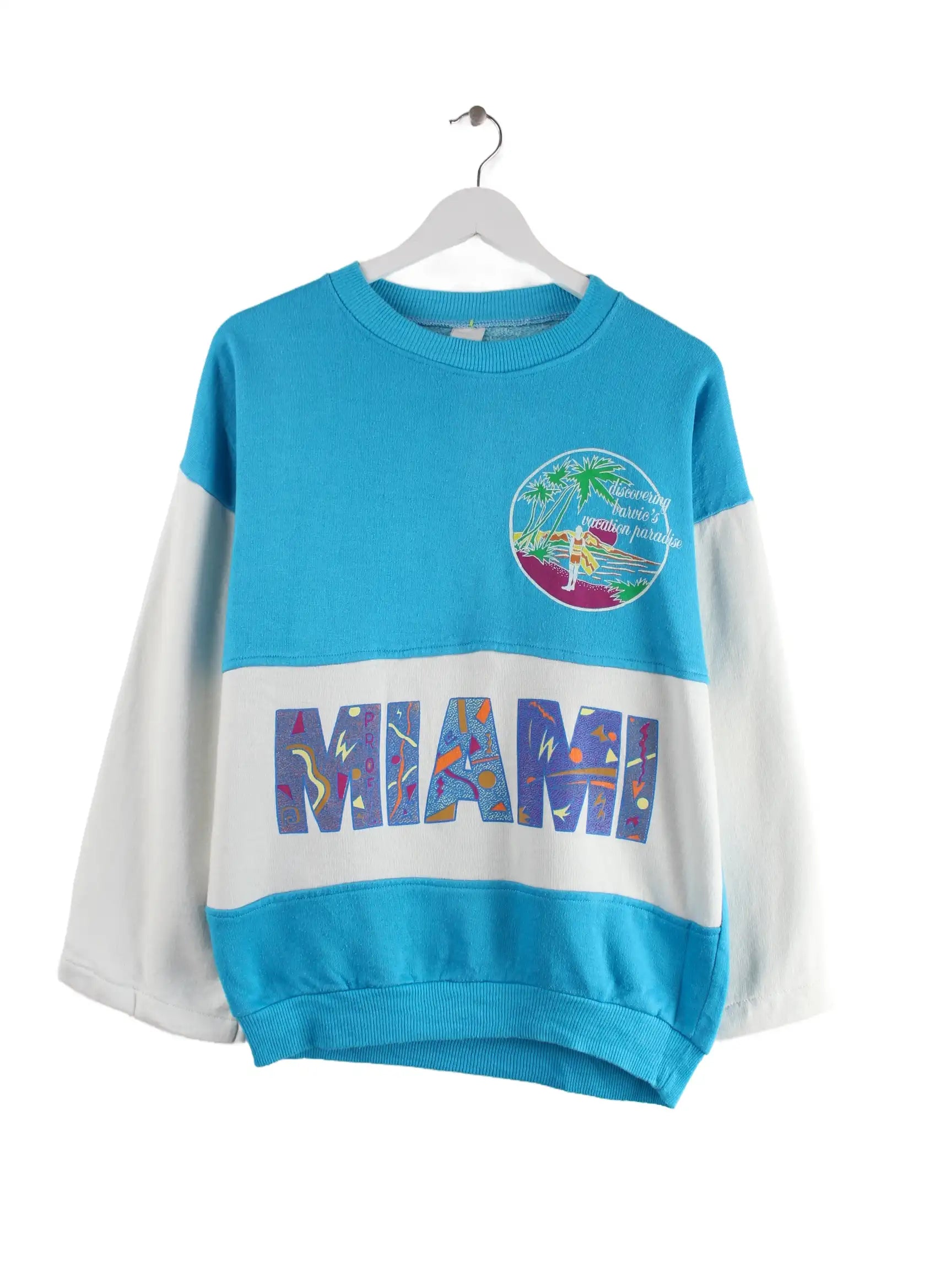 Vintage 90s Miami Print Sweater Türkis S