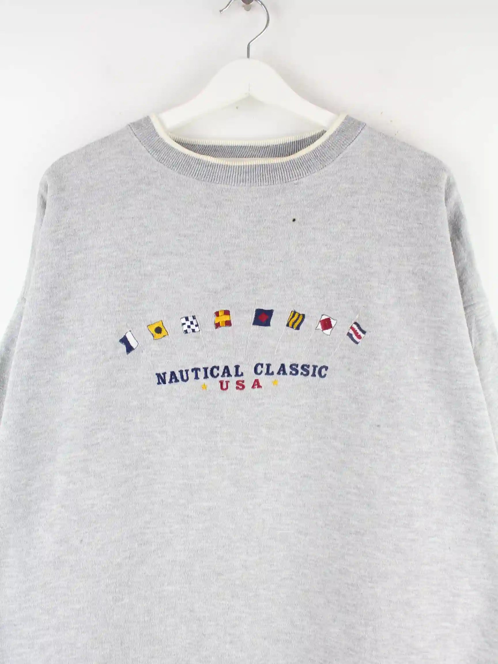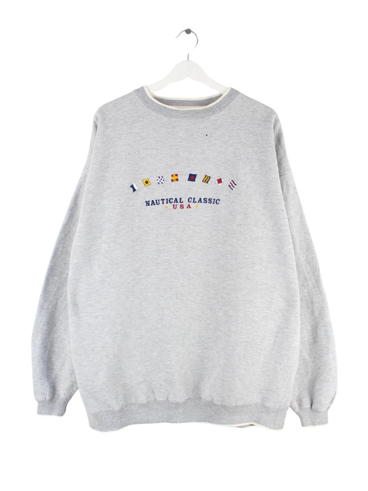 Vintage 90s Nautical Embroidered Sweater Grau XXL