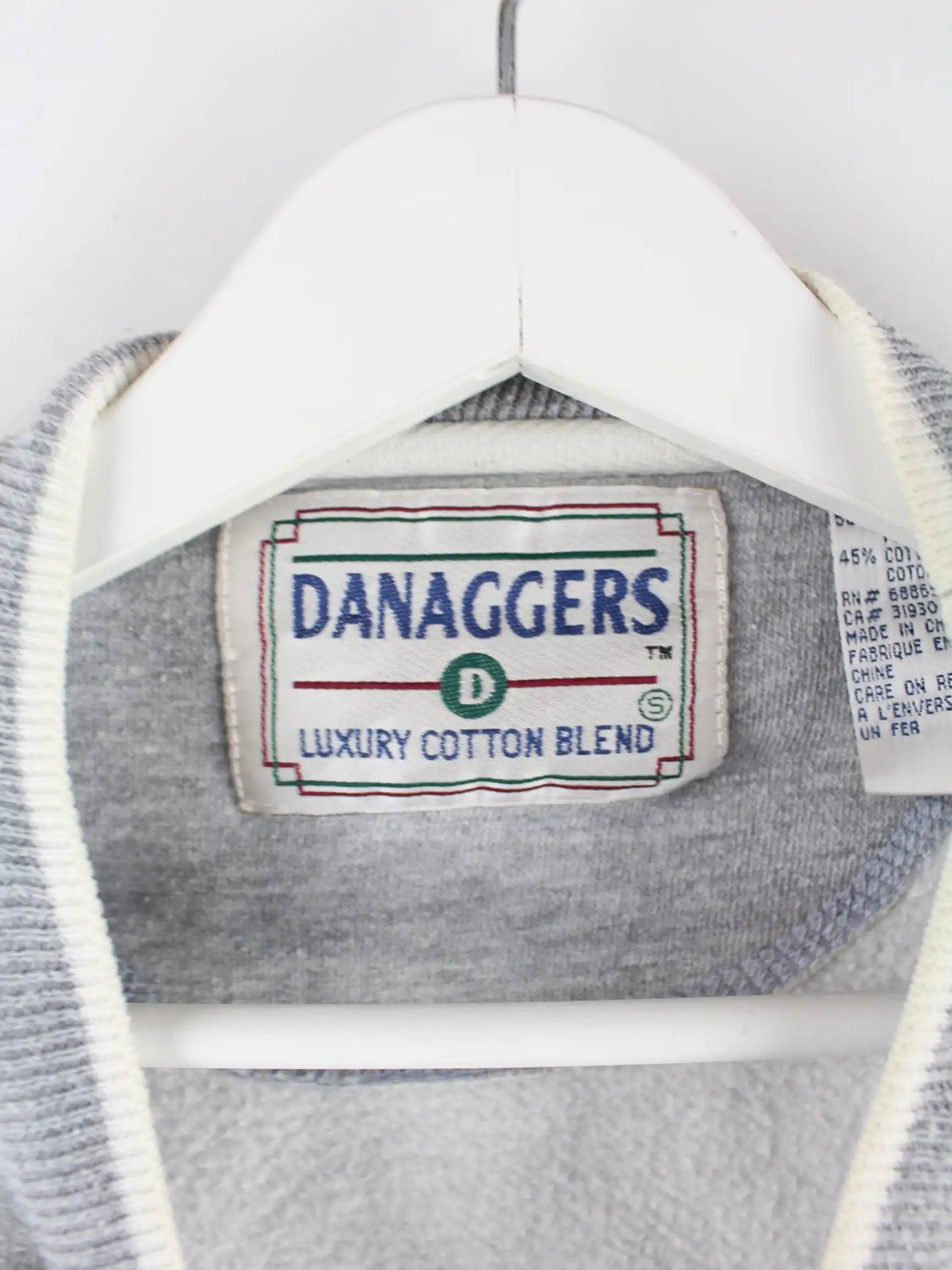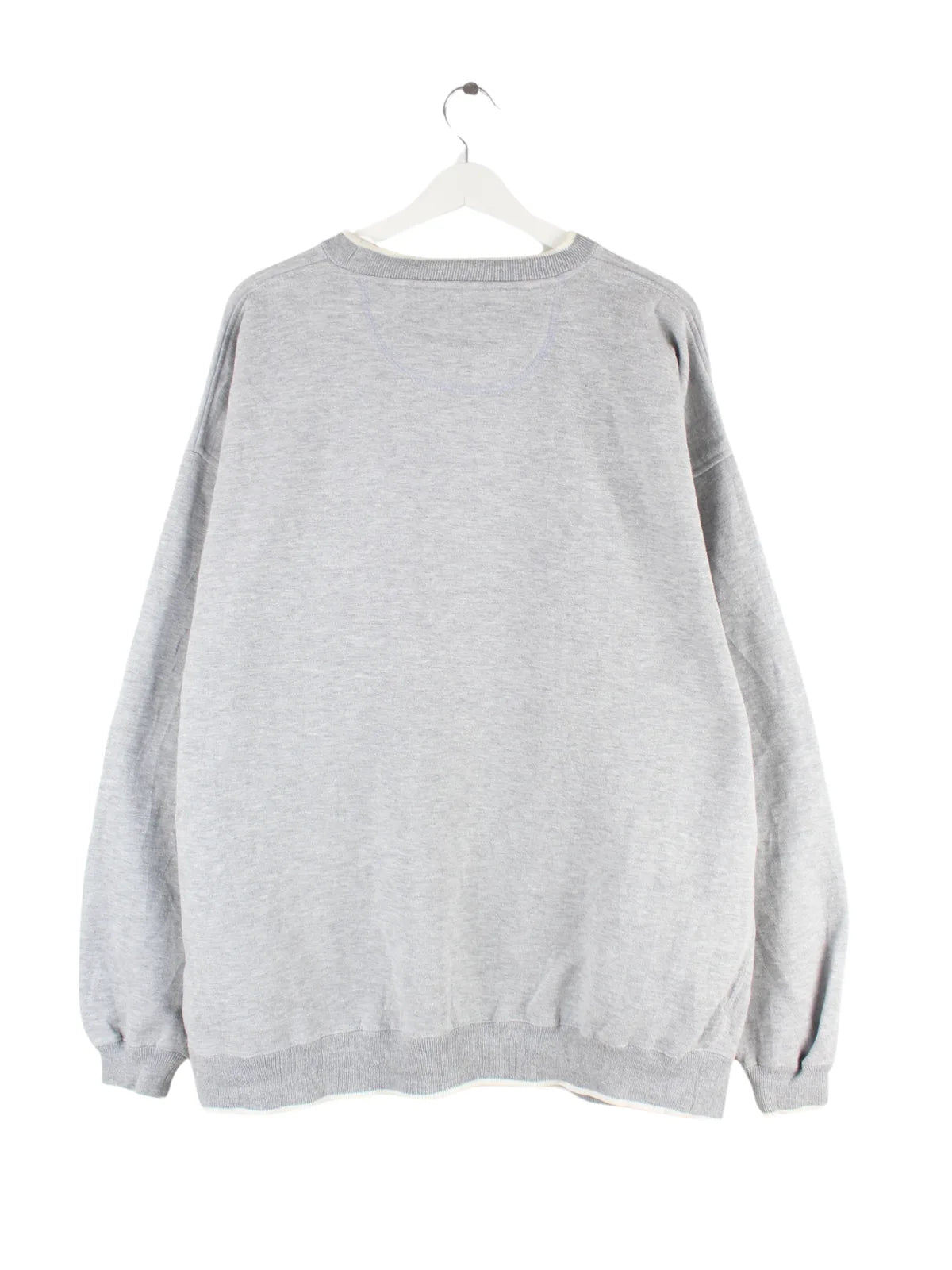 Grauer Vintage Sweater mit Stickereien aus den 90'ern in Größe XXL. Er ist aus einer Baumwollmischung gefertigt und in gutem Zustand im Bestand.