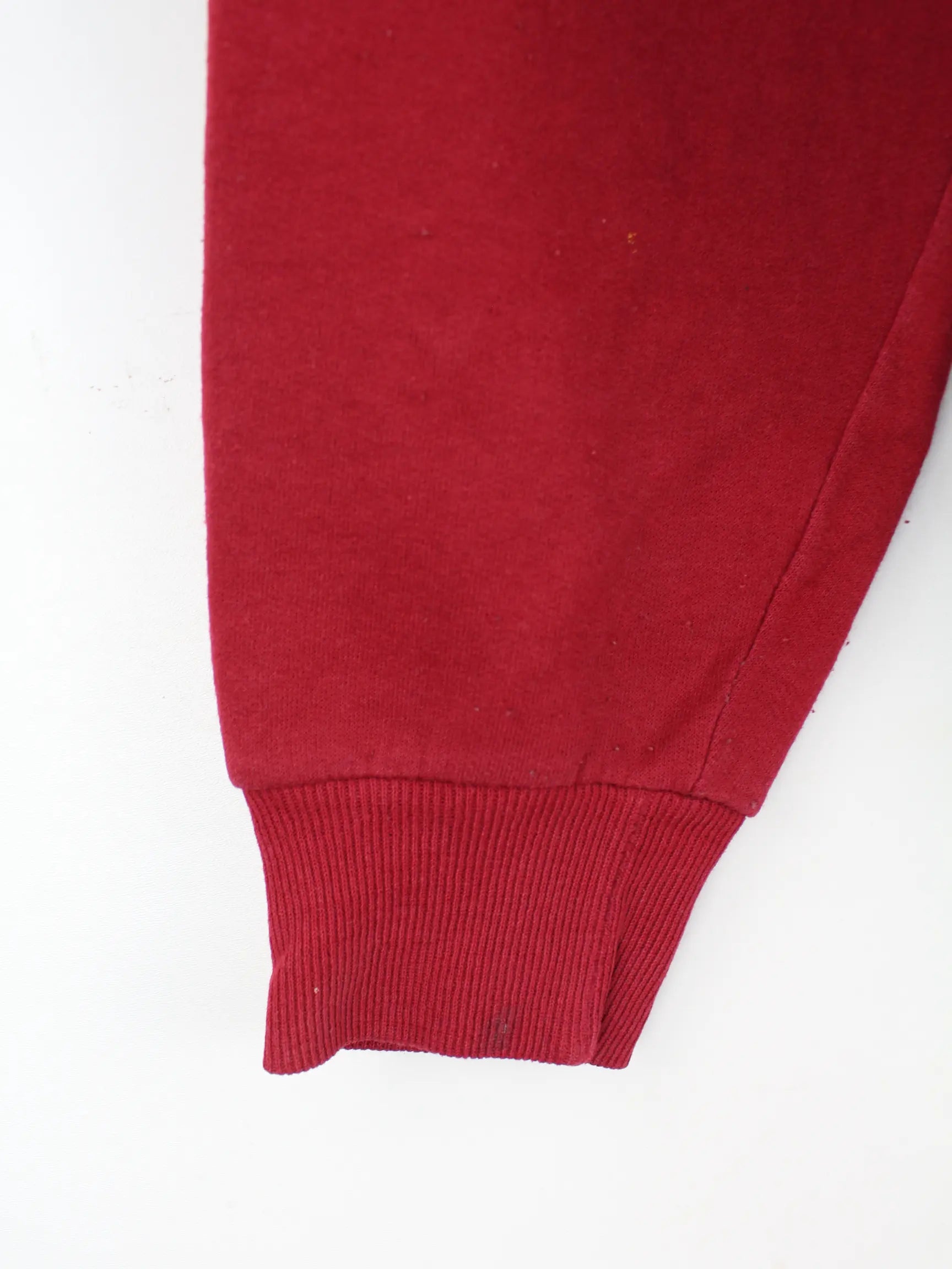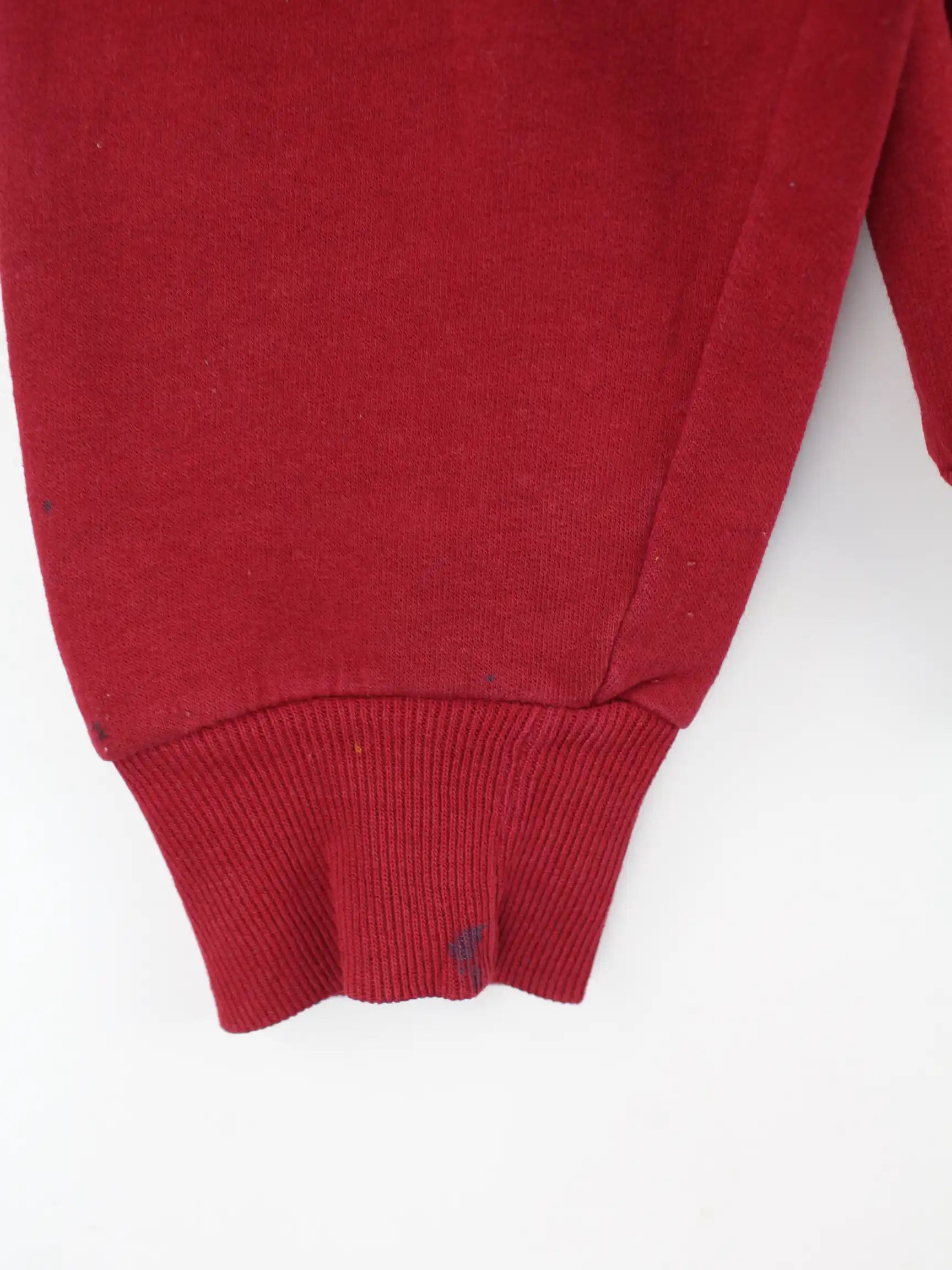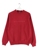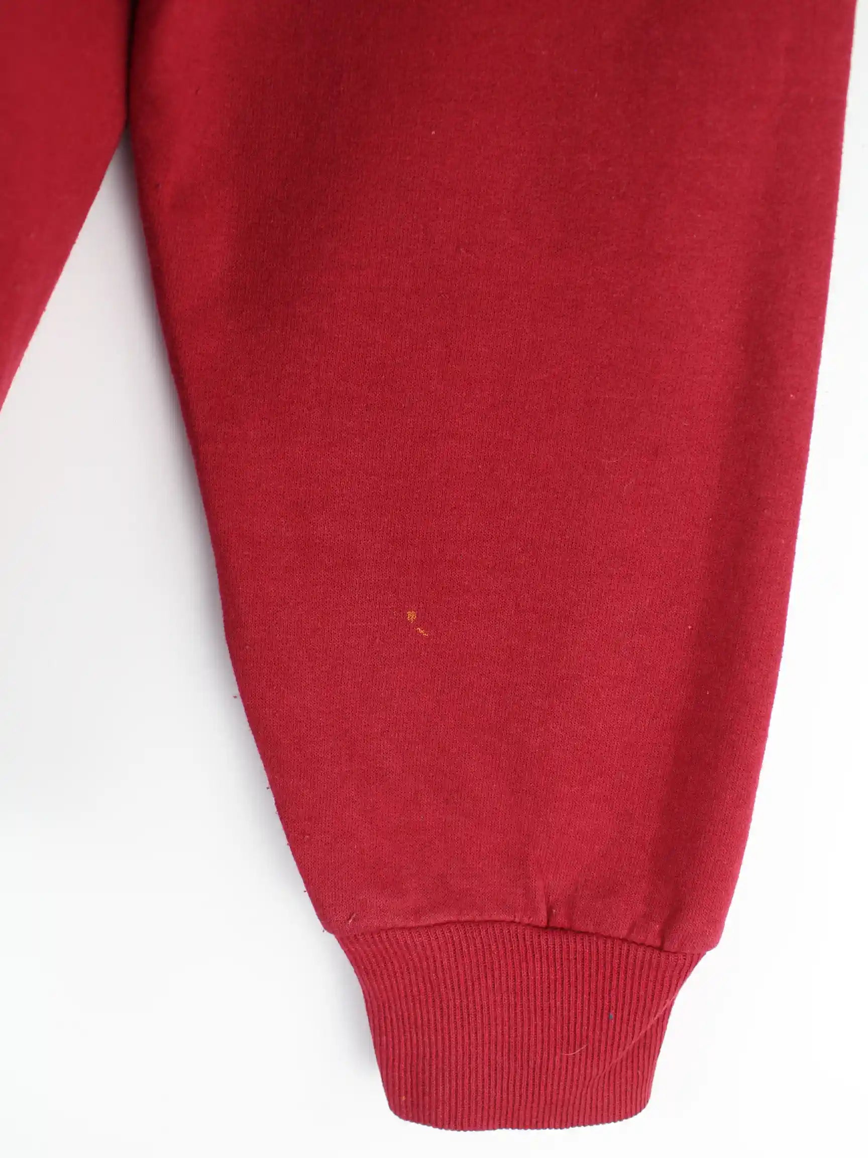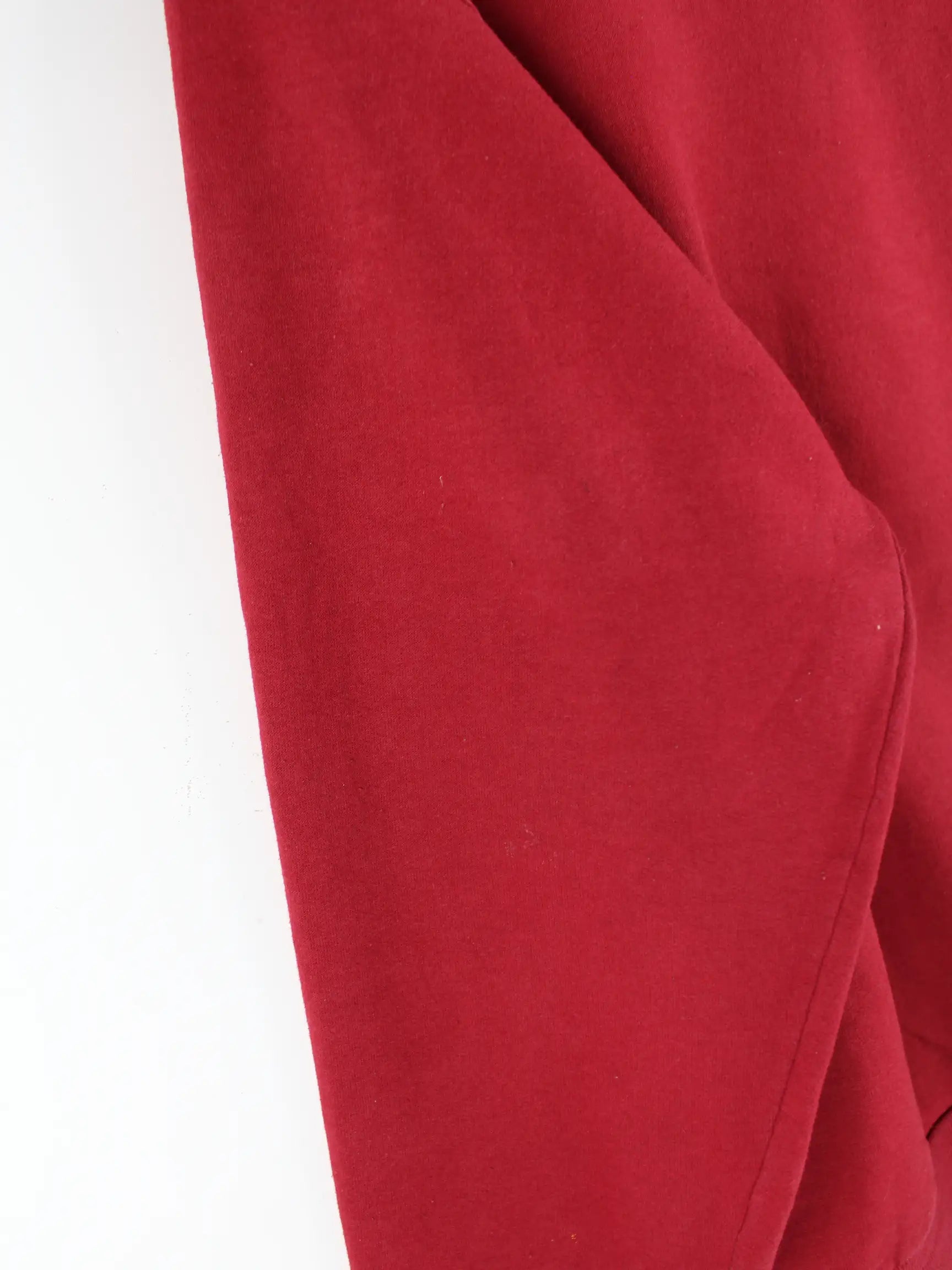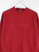 Roter Vintage Sweater mit gesticktem Logo aus den 90'ern in Größe M. Er ist aus einer Baumwollmischung produziert. Den Zustand würden wir als 'In Ordnung' bezeichnen (vergl. Bilder).