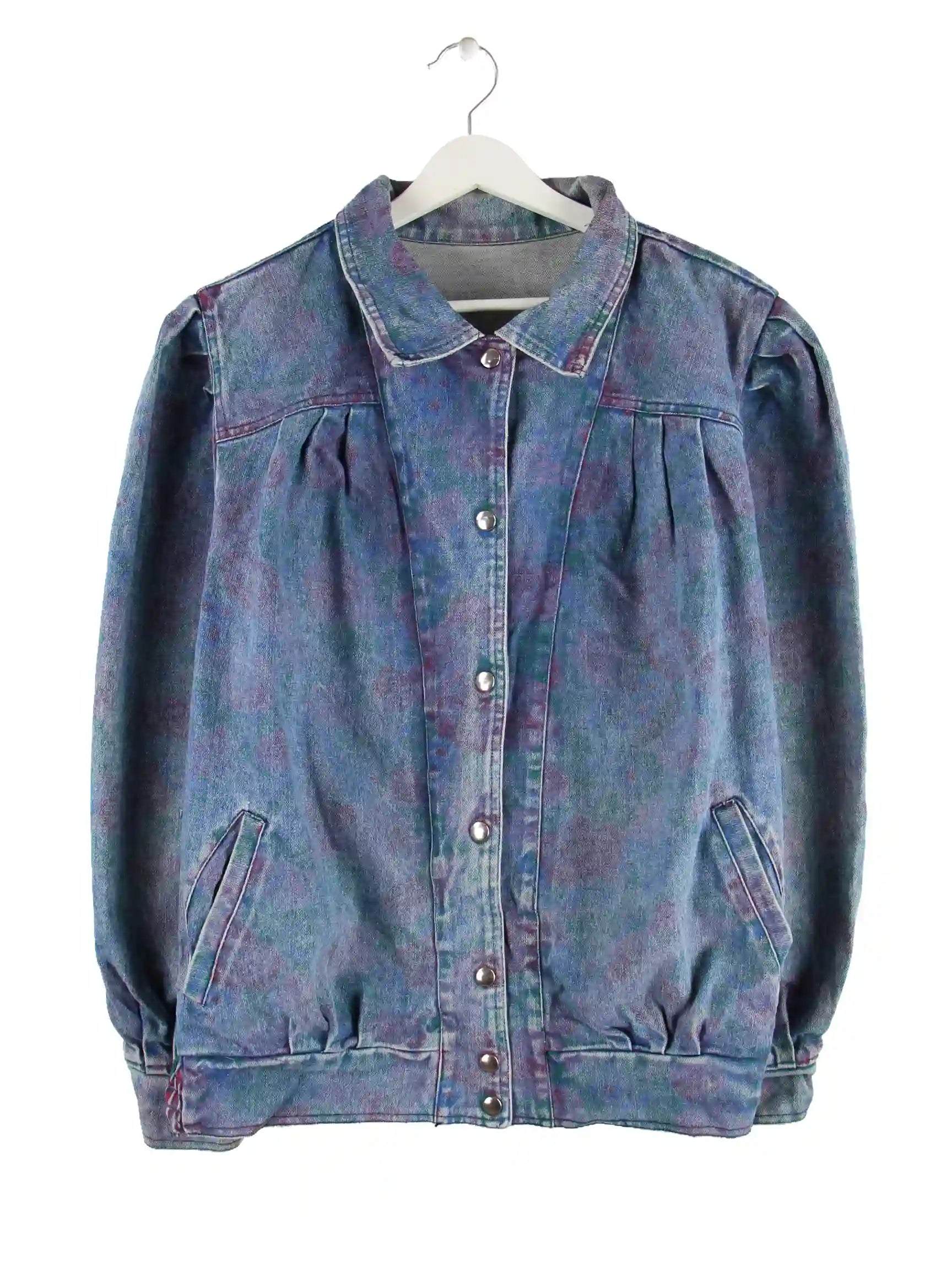Blaue Vintage Jacke aus den 90'ern in Größe M. Sie ist aus Synthetik hergestellt und in sehr gutem Zustand im Bestand.
