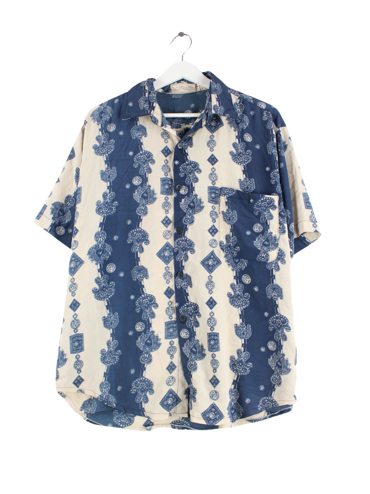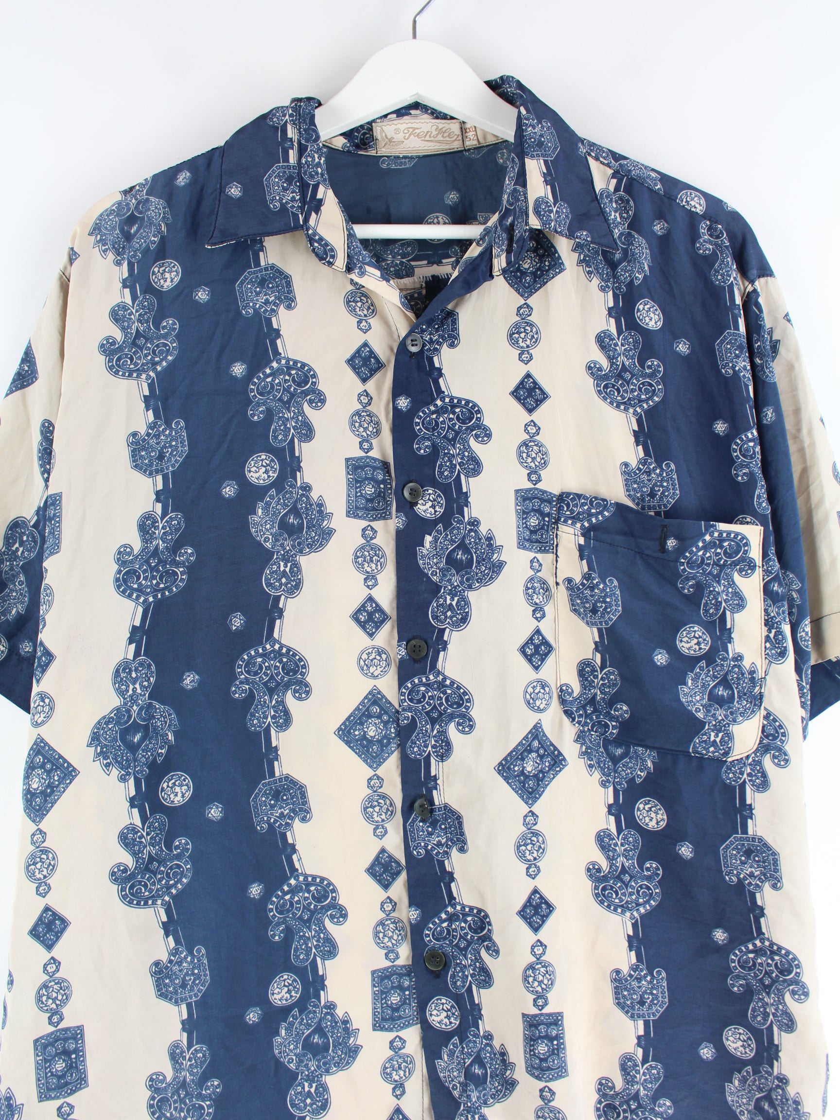 Vintage 90s Pattern Short Sleeve Shirt Blue L