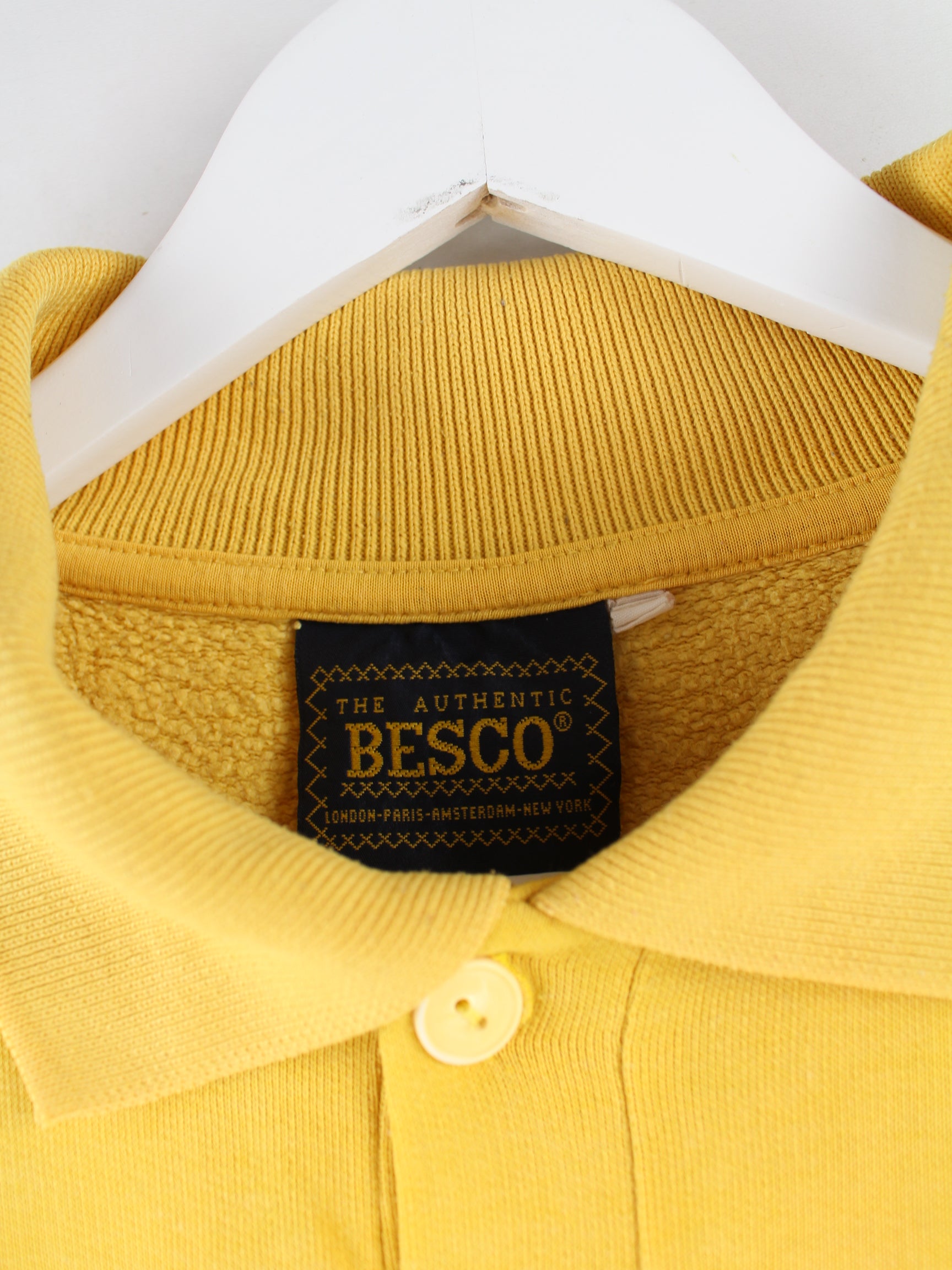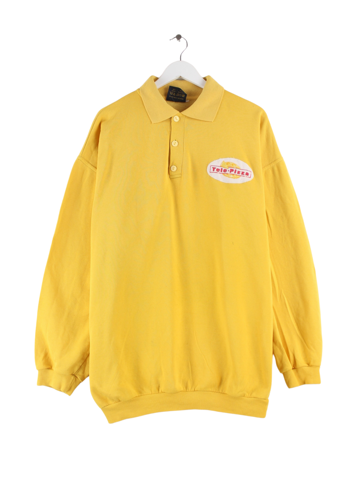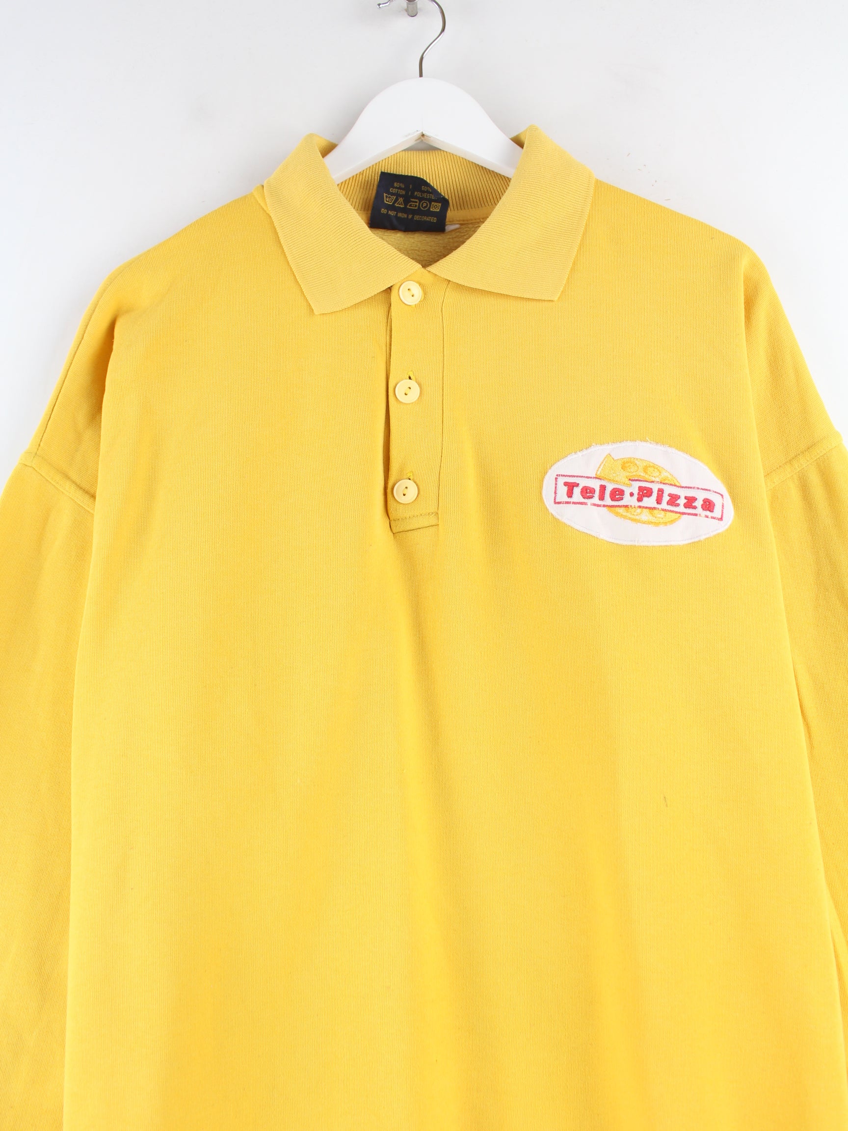 Vintage 90s Tele PIzza Embroidered Polo Sweater Yellow XL