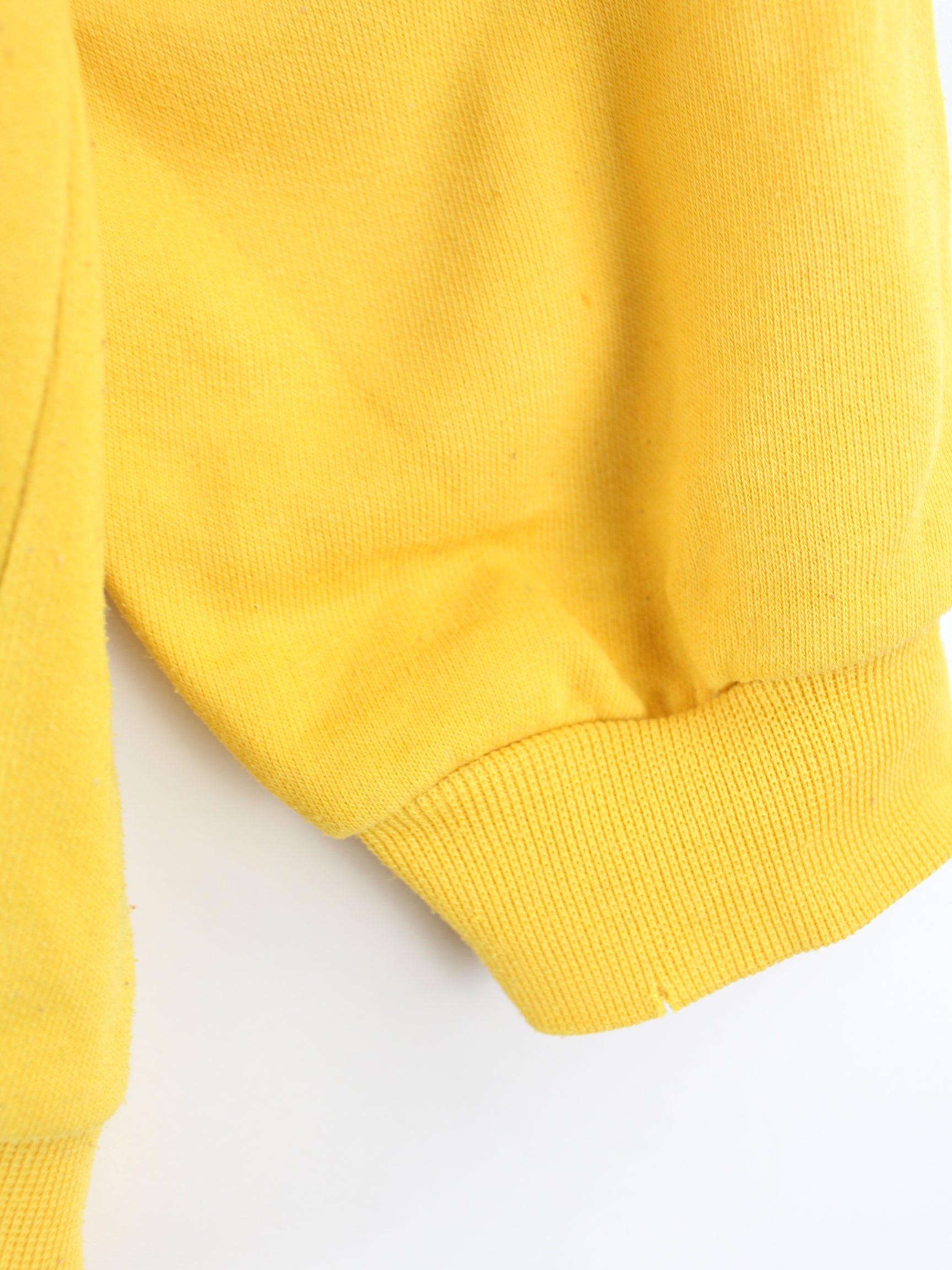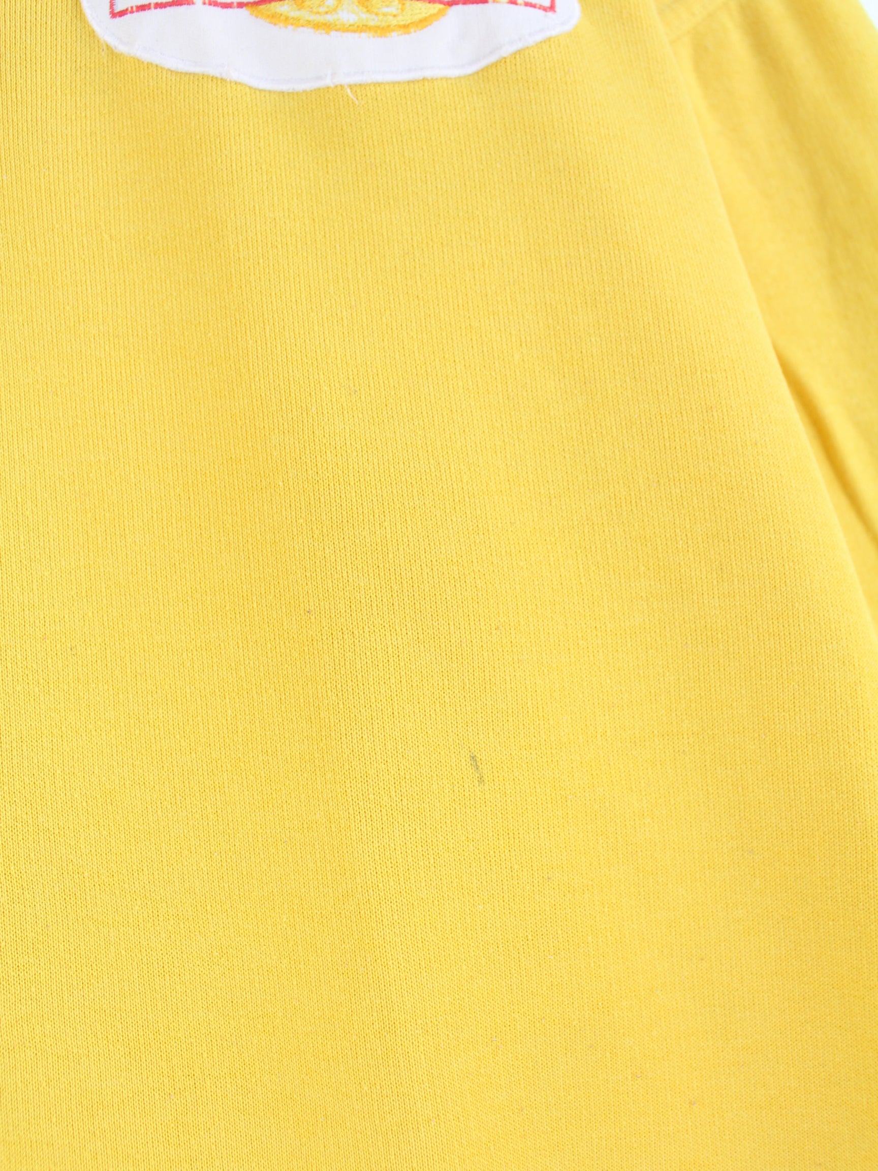 Vintage sweater with embroidered motifs in size XL from the 90's. It is made of a cotton blend and comes in yellow.