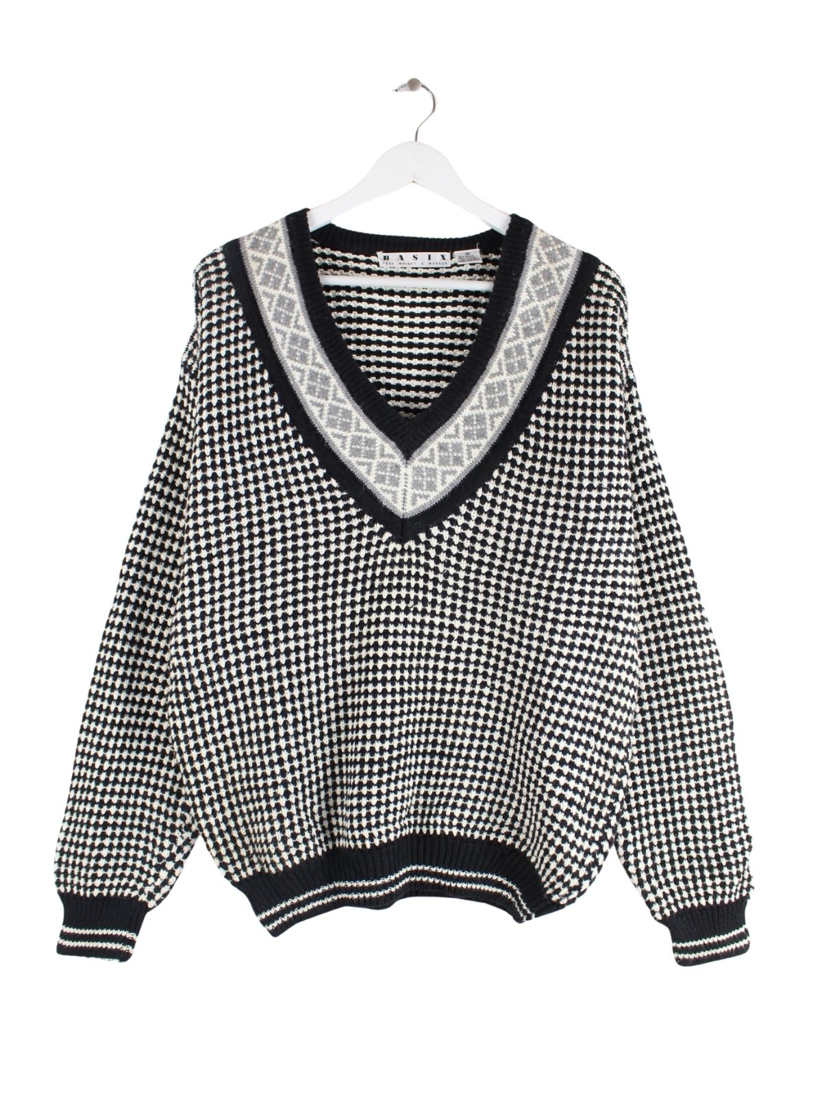 Vintage 90s V-Neck Pullover Schwarz M