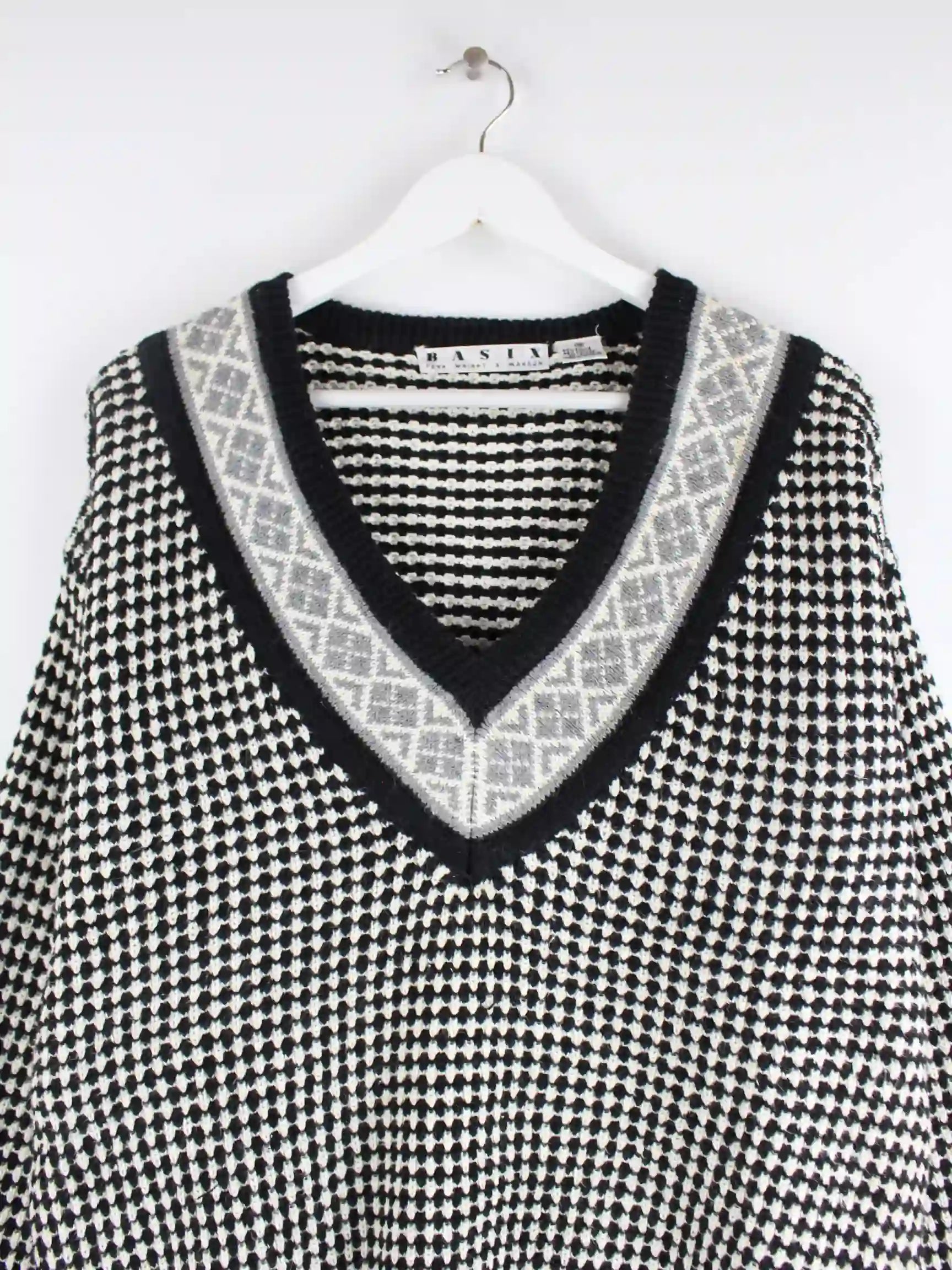Vintage Pullover in Größe M aus den 90'ern. Er ist aus einer Synthetikmischung und in Schwarz bei uns vorrätig.