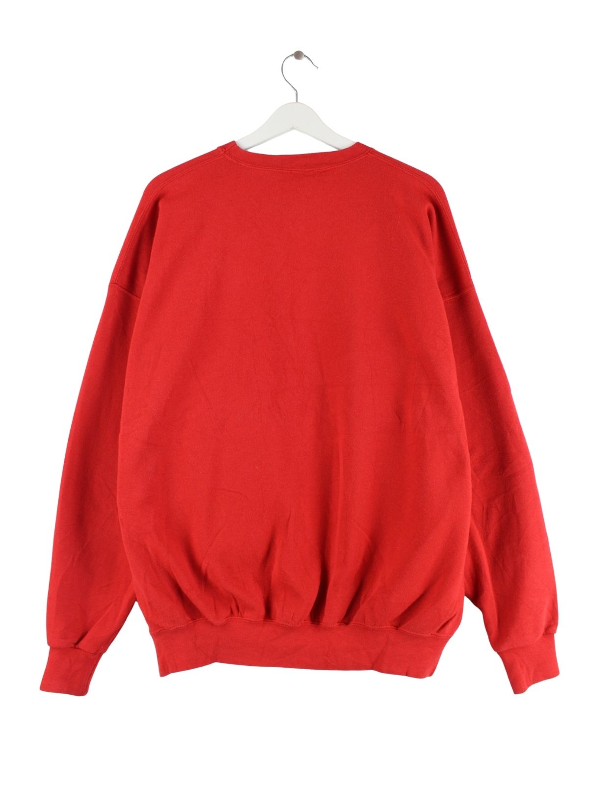 Roter Vintage Sweater aus den 90'ern in Größe XXL. Er ist aus einer Baumwollmischung und in sehr gutem Zustand auf Lager. Mit schickem University Print.
