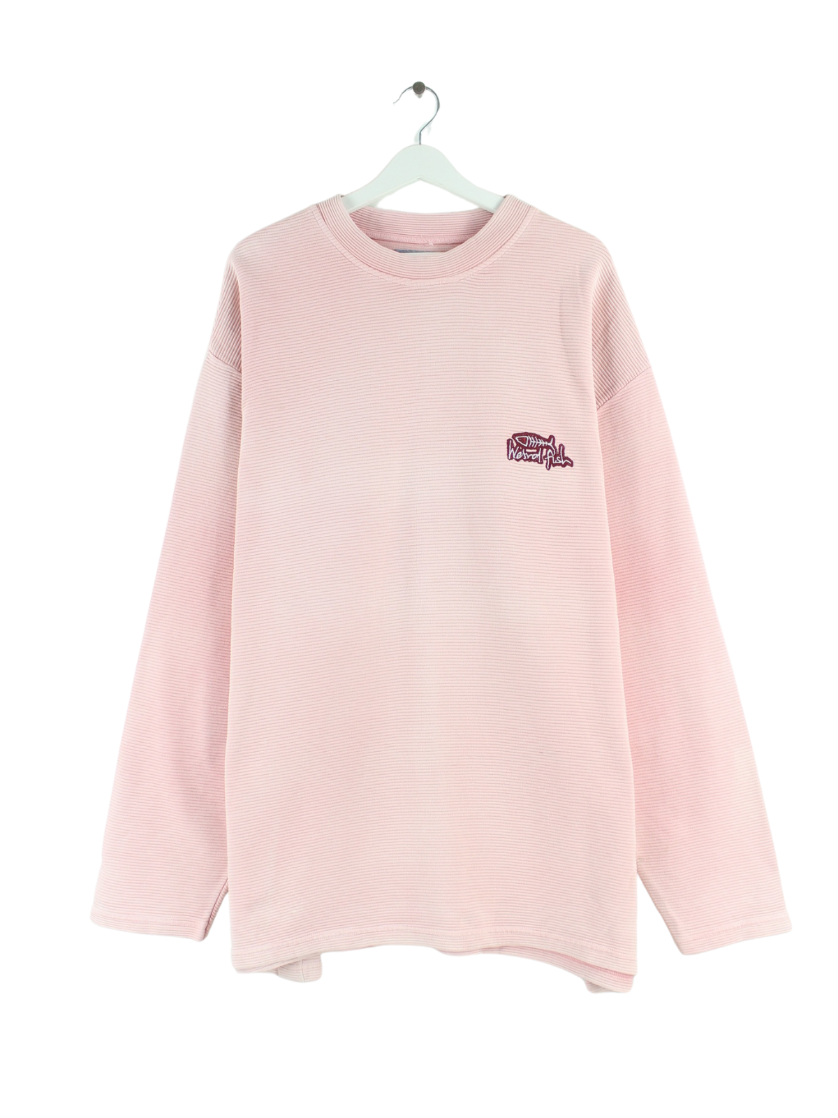Vintage sweater with embroidery in size XXL from the 90's. It is made from a cotton blend and is available from us in pink.