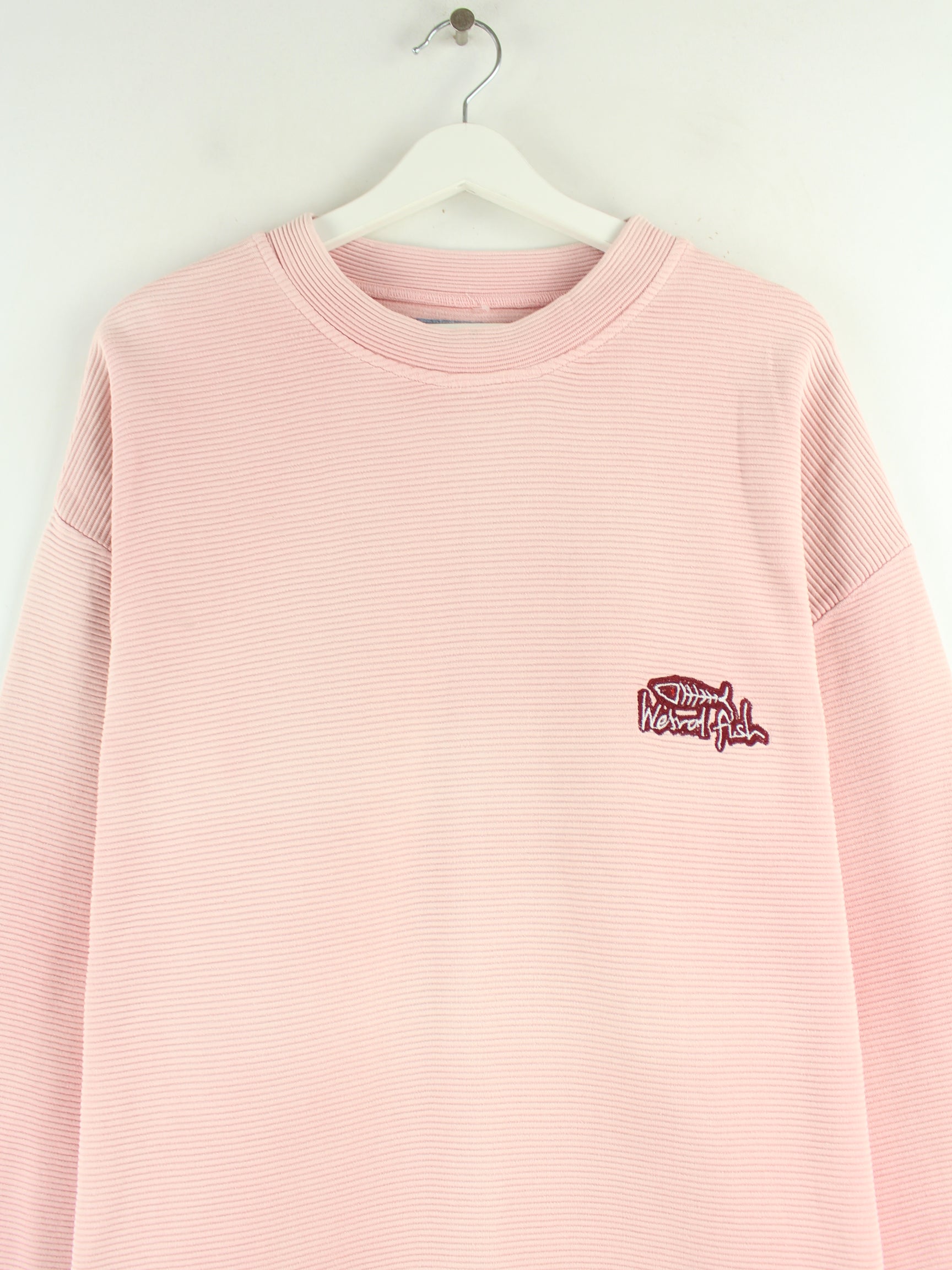 Vintage 90s Weird Fish Embroidered Sweater Pink XXL