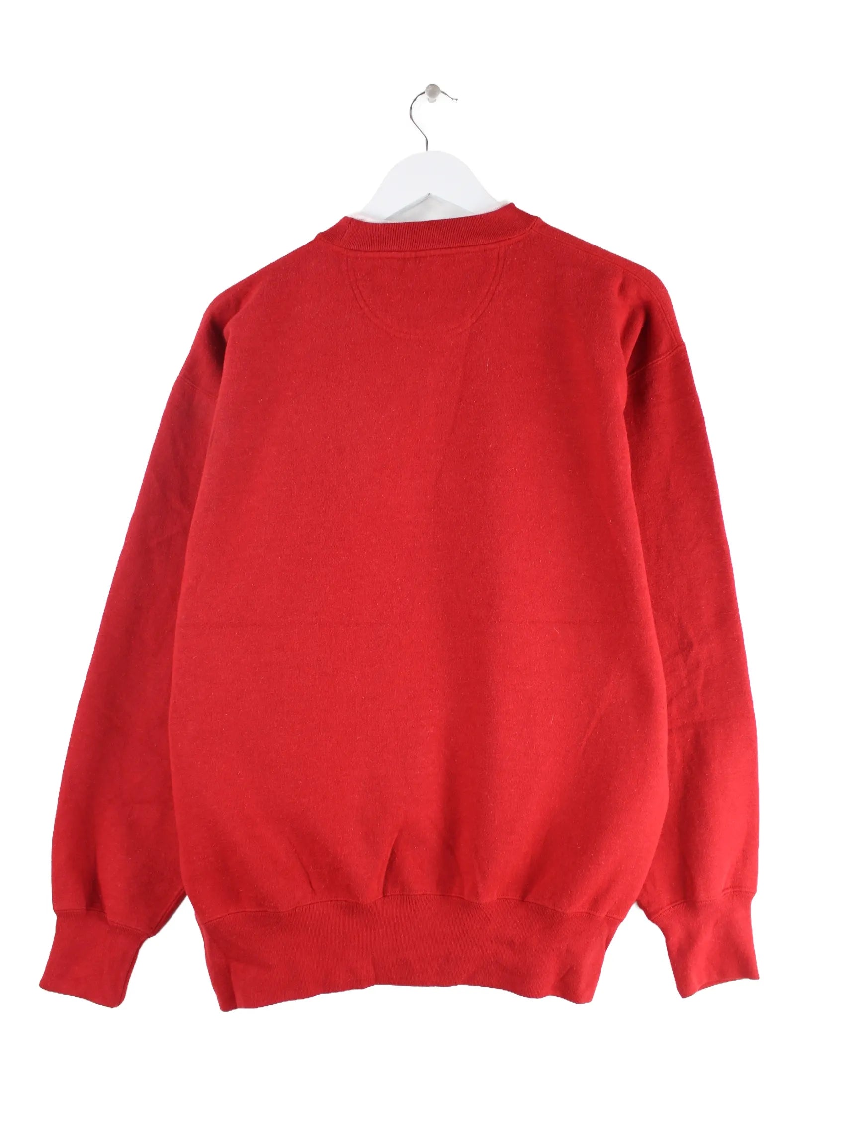 Roter Vintage Sweater aus den 90'ern in Größe L. Er ist aus einer Baumwollmischung gemacht und in sehr gutem Zustand auf Lager.