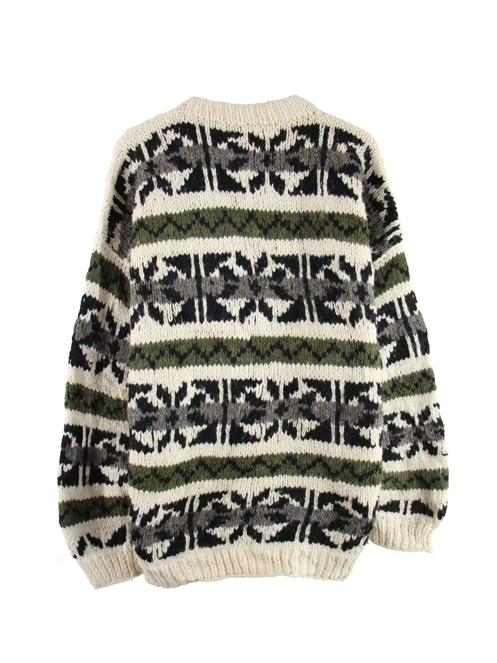 Vintage Pullover in Größe XL aus den 90'ern. Er ist aus Wolle und in Beige vorrätig.