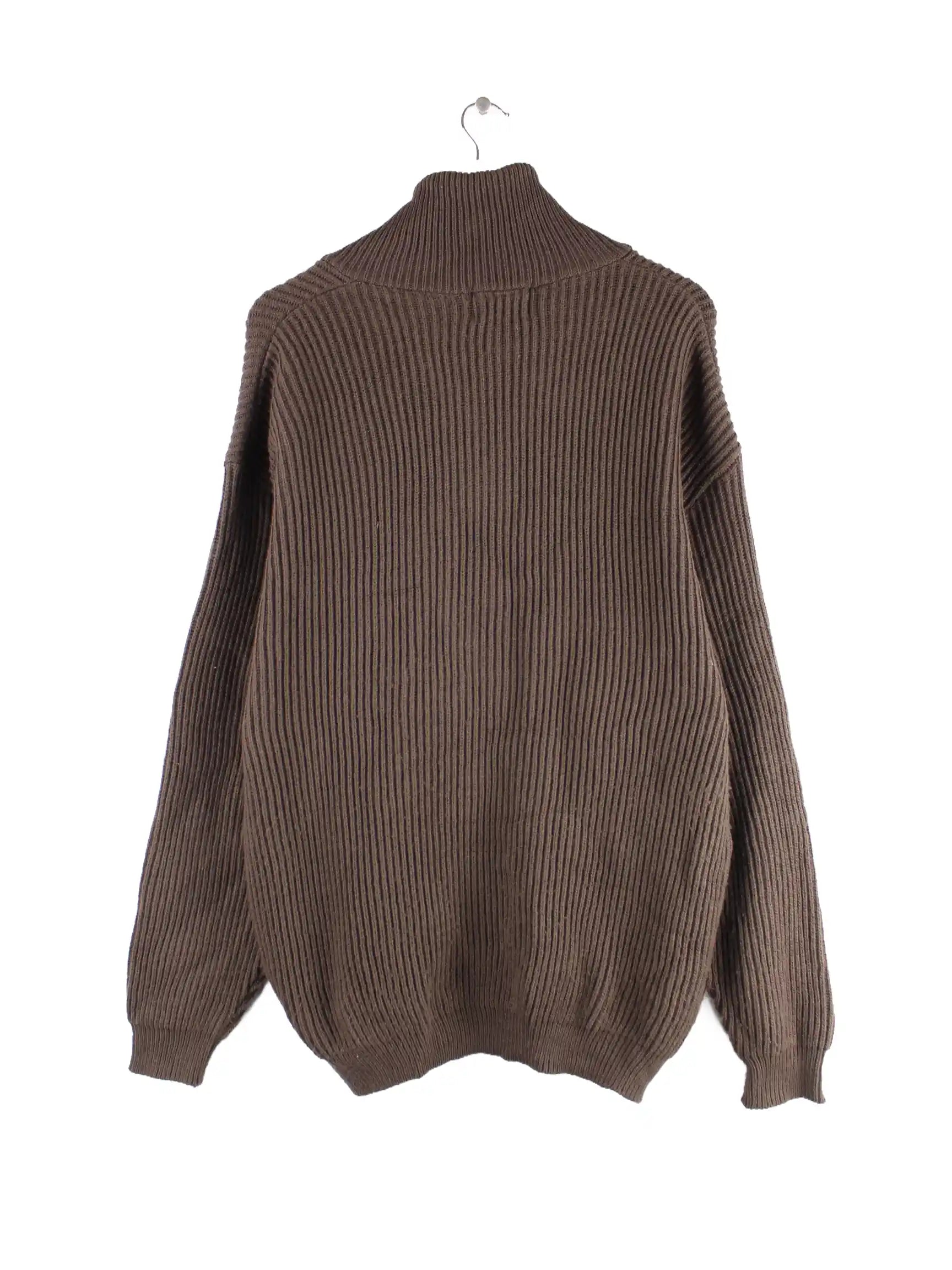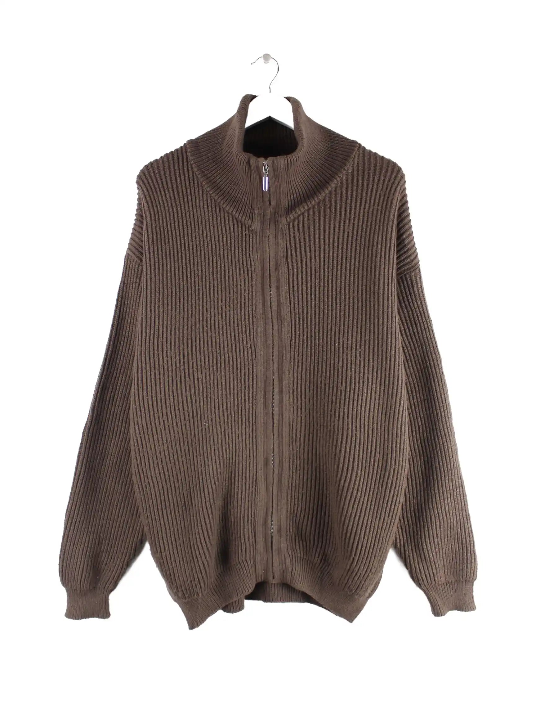 Vintage Strickjacke mit Zip in Größe L aus den 90'ern. Sie ist aus Baumwolle gemacht und in Braun vorrätig.