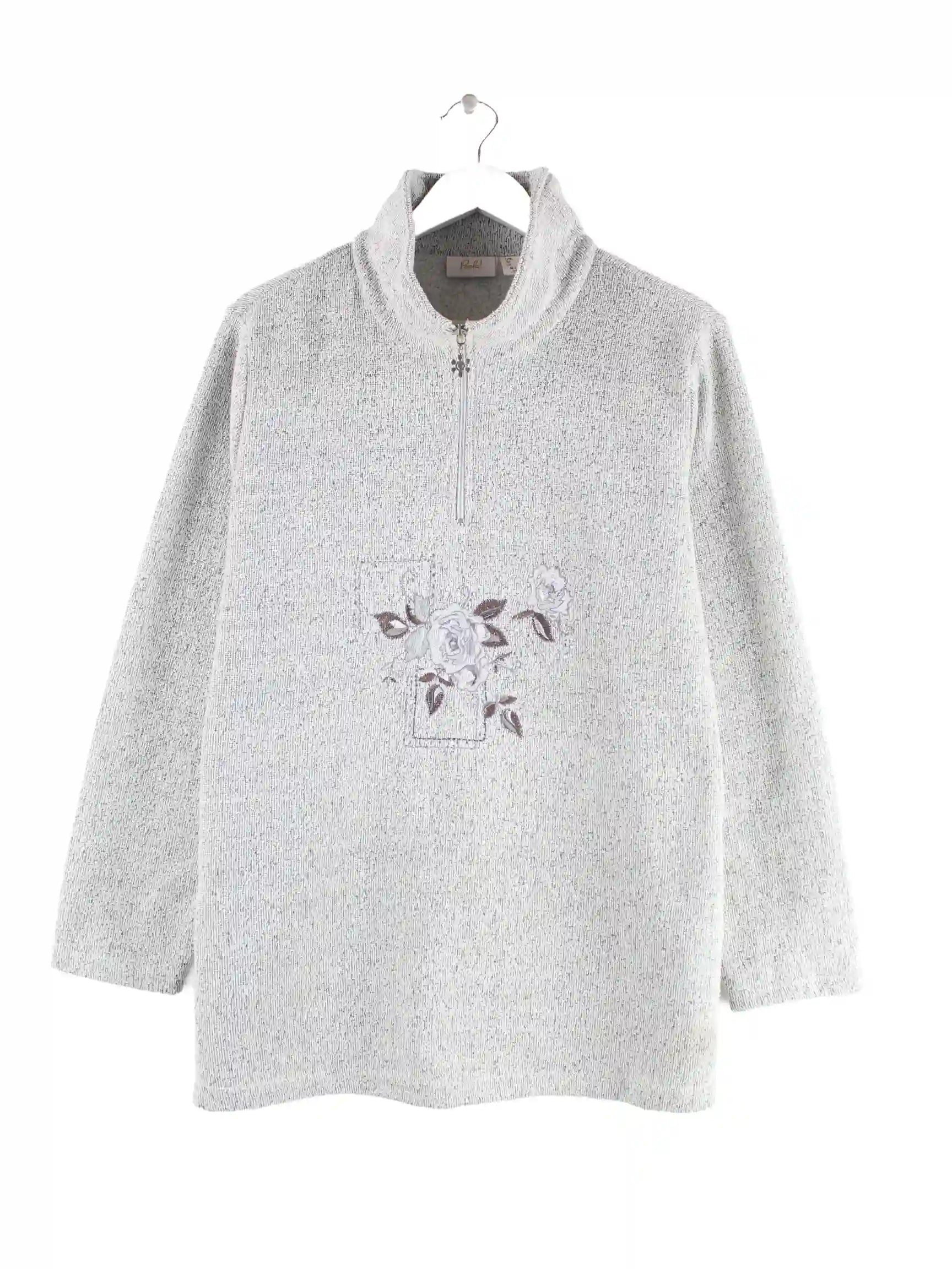 Vintage Damen 00s Flower Half Zip Pullover Grau L