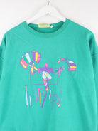 Vintage Sweater in Größe L aus den 80'ern. Er ist aus einer Baumwollmischung angefertigt und in Grün lieferbar. Mit seltenem Up Print.