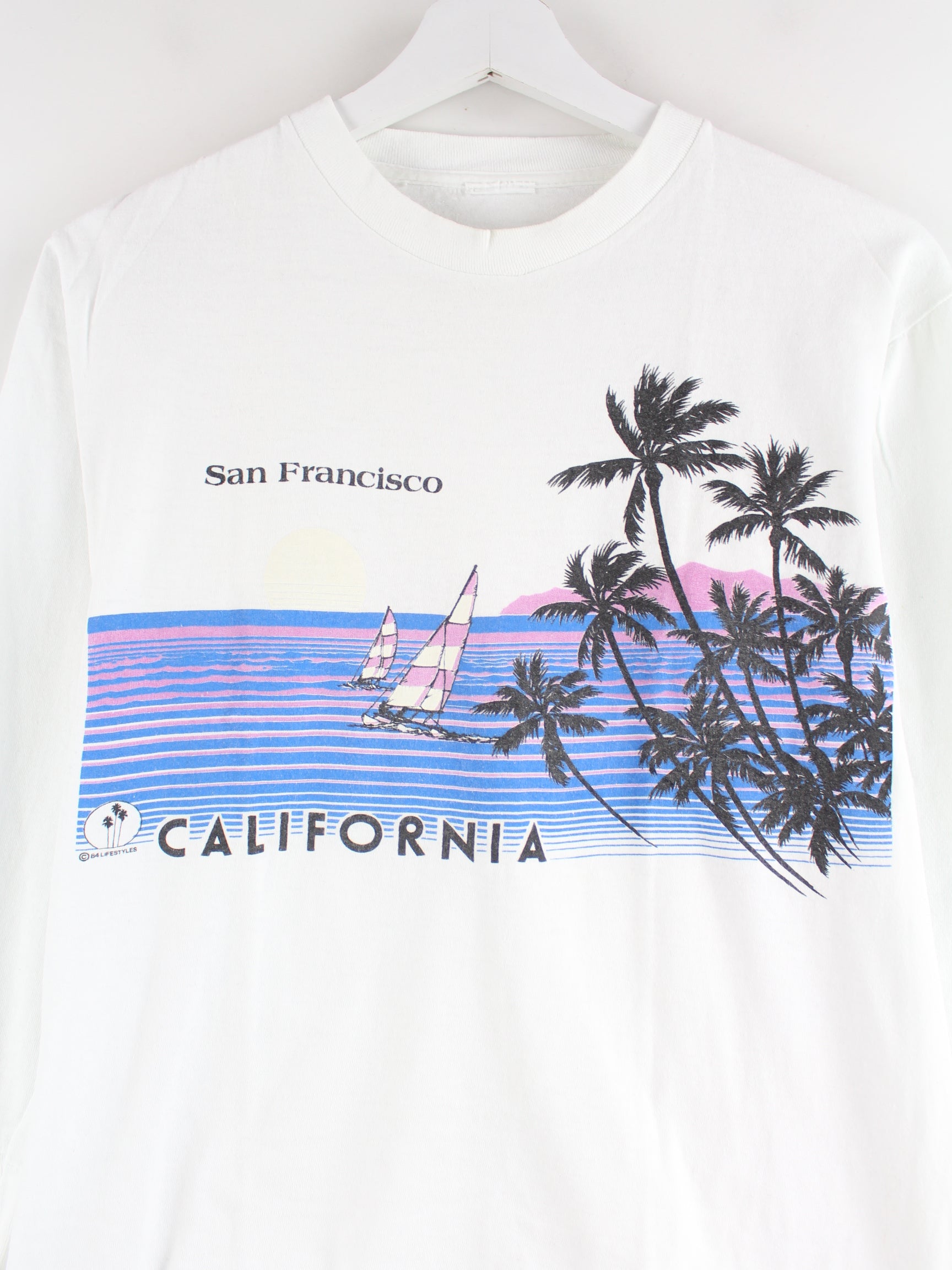 Vintage Women's 90s California Print Single Stitch Sweatshirt White XS