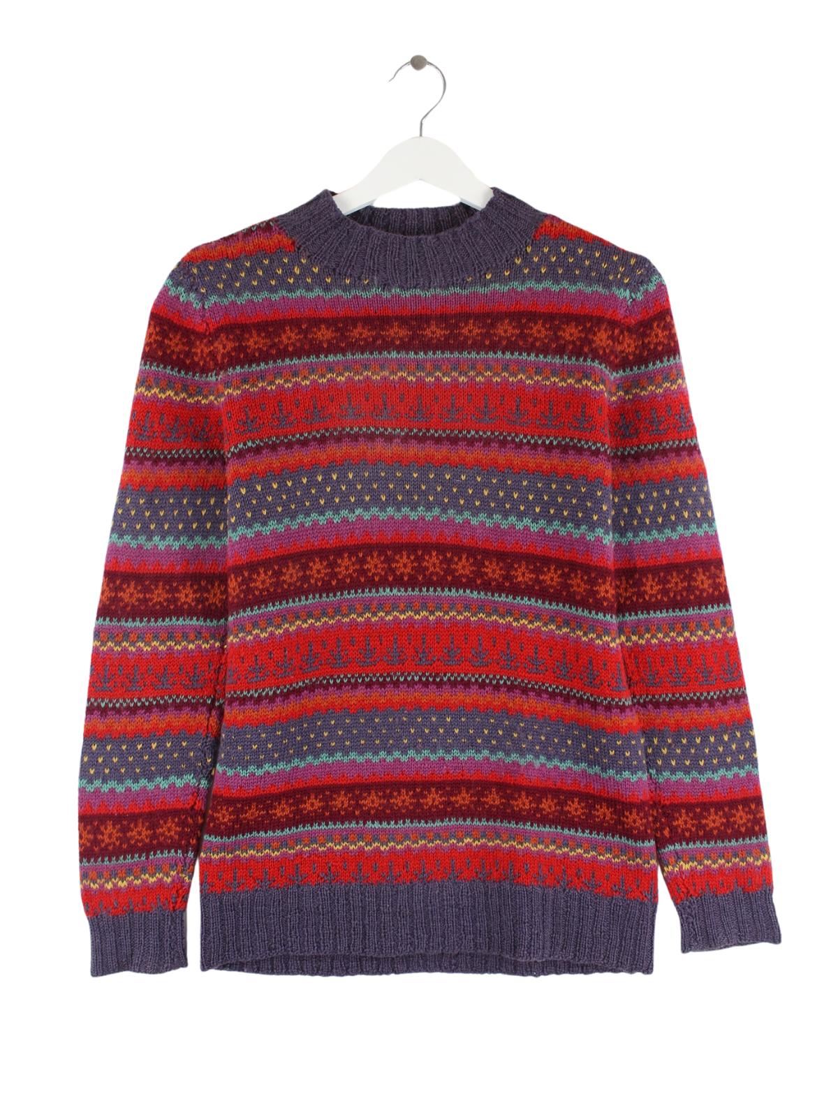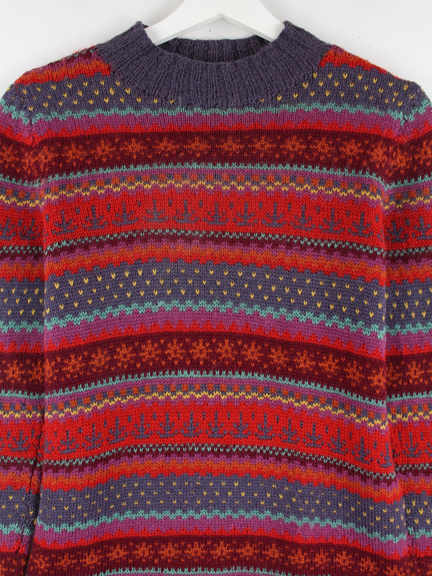 Vintage Pullover in Größe M aus den 90'ern. Er ist aus Wolle produziert und in Rot im Angebot.