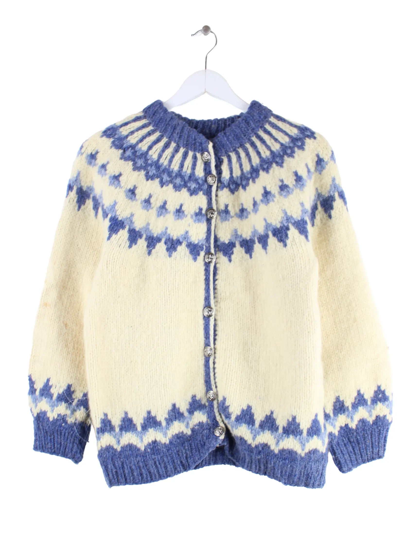 Beigefarbene Vintage Strickjacke aus den 90'ern in Größe M. Sie ist aus Wolle angefertigt. Den Zustand würden wir als 'In Ordnung' bezeichnen (vergl. Bilder).