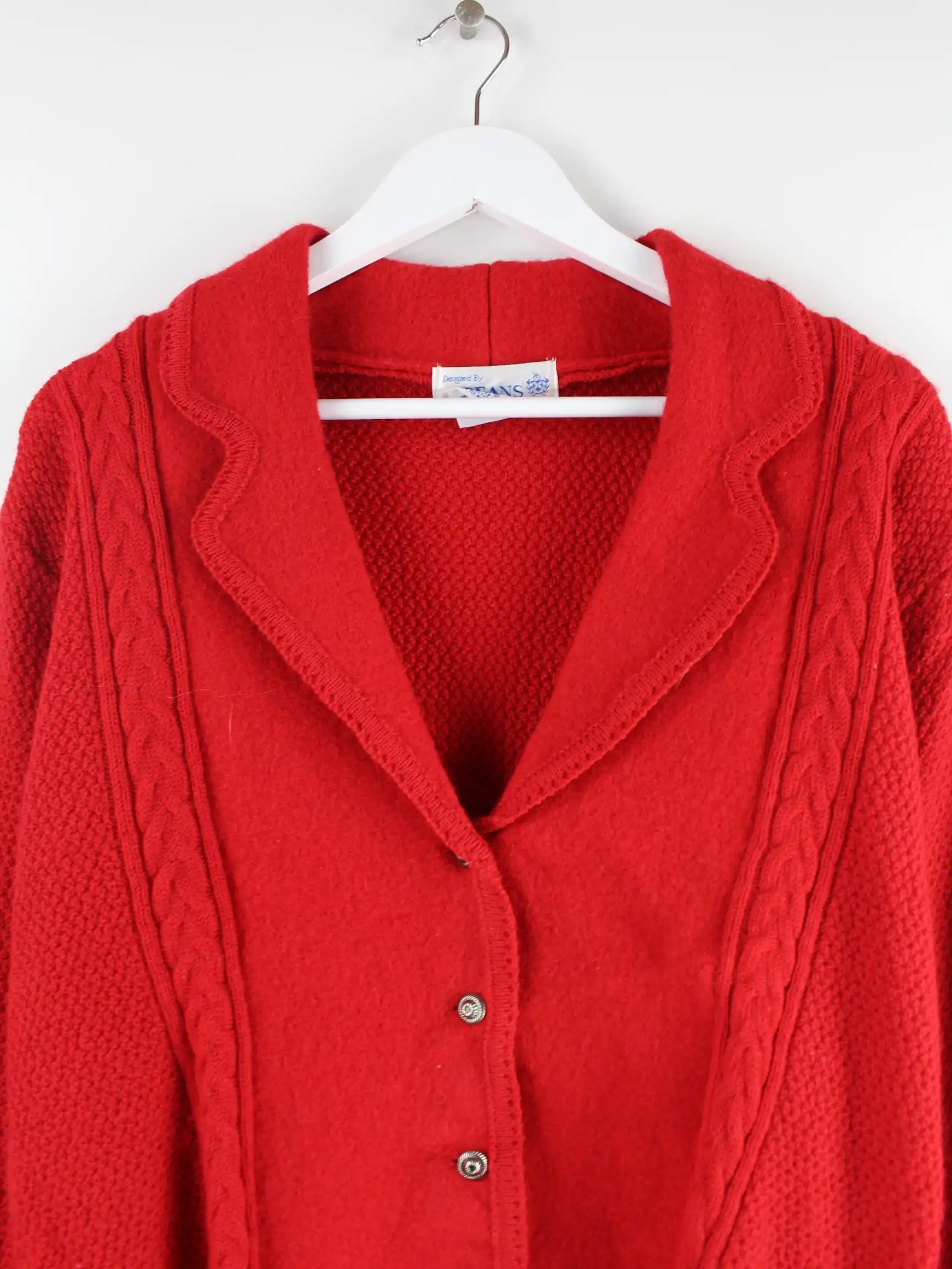 Vintage Strickjacke in Größe M aus den 90'ern. Sie ist aus Wolle und in Rot im Bestand.