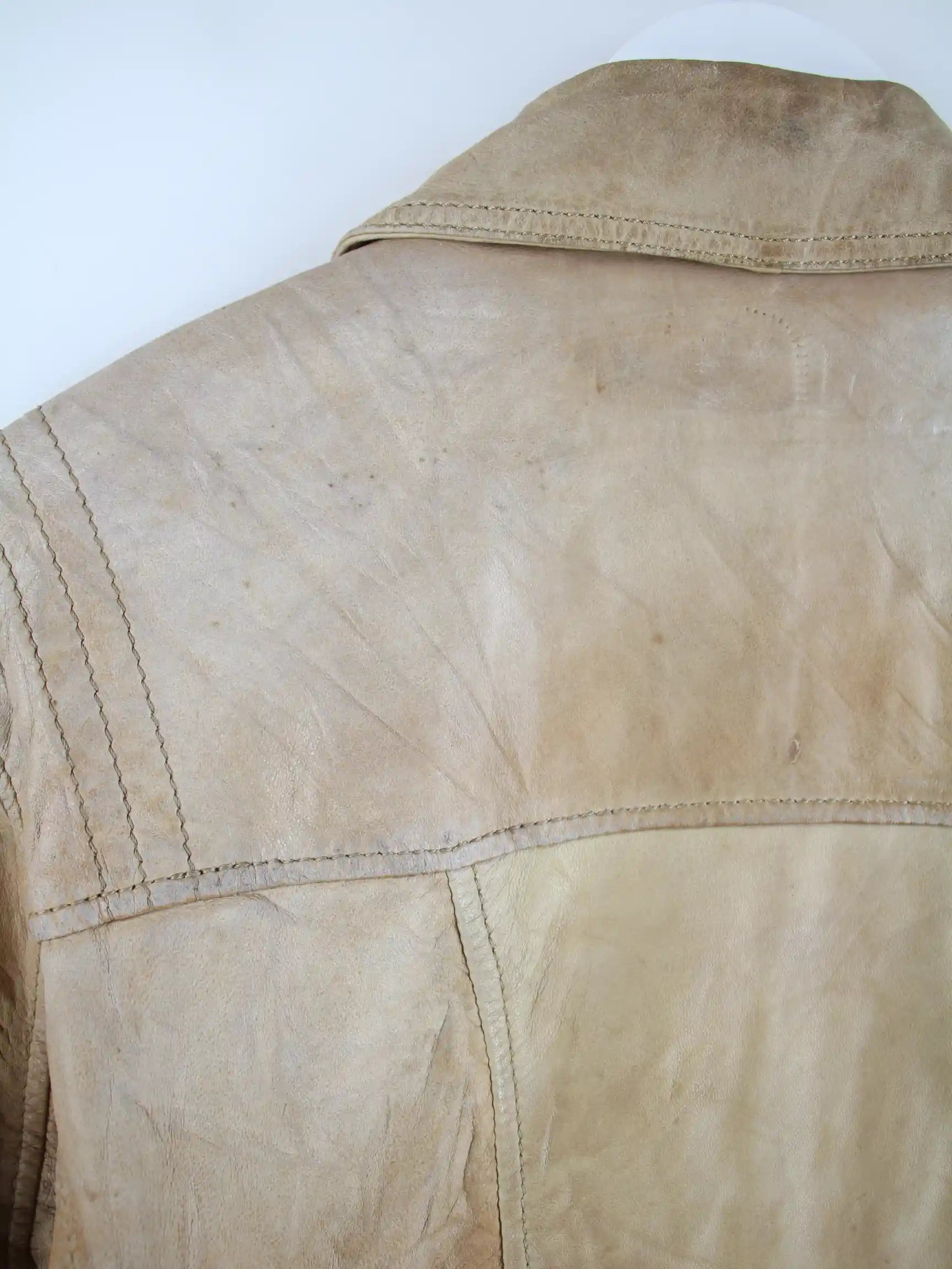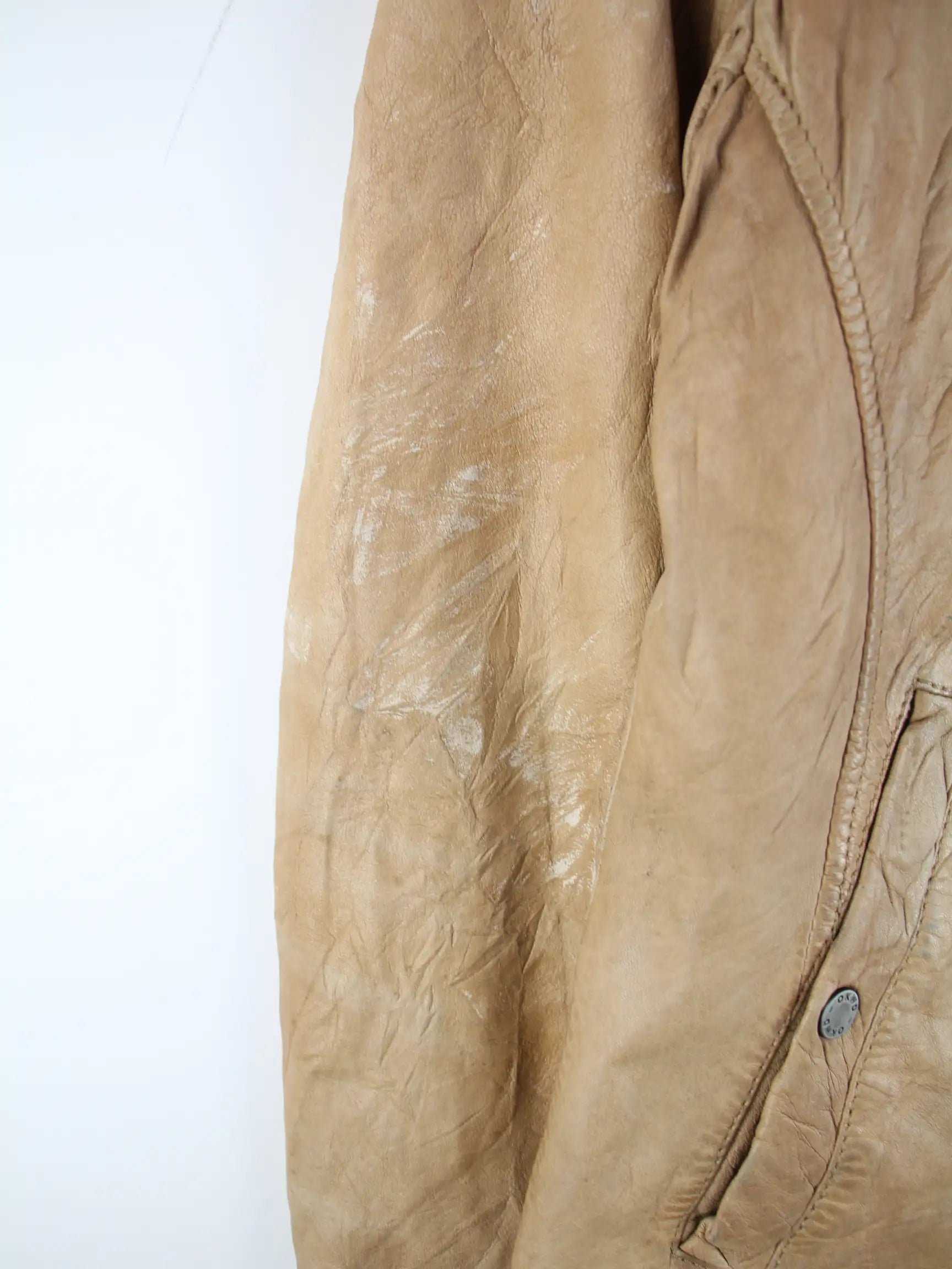 Vintage Jacke in Größe L. Sie ist aus Leder gefertigt und in Braun lieferbar.