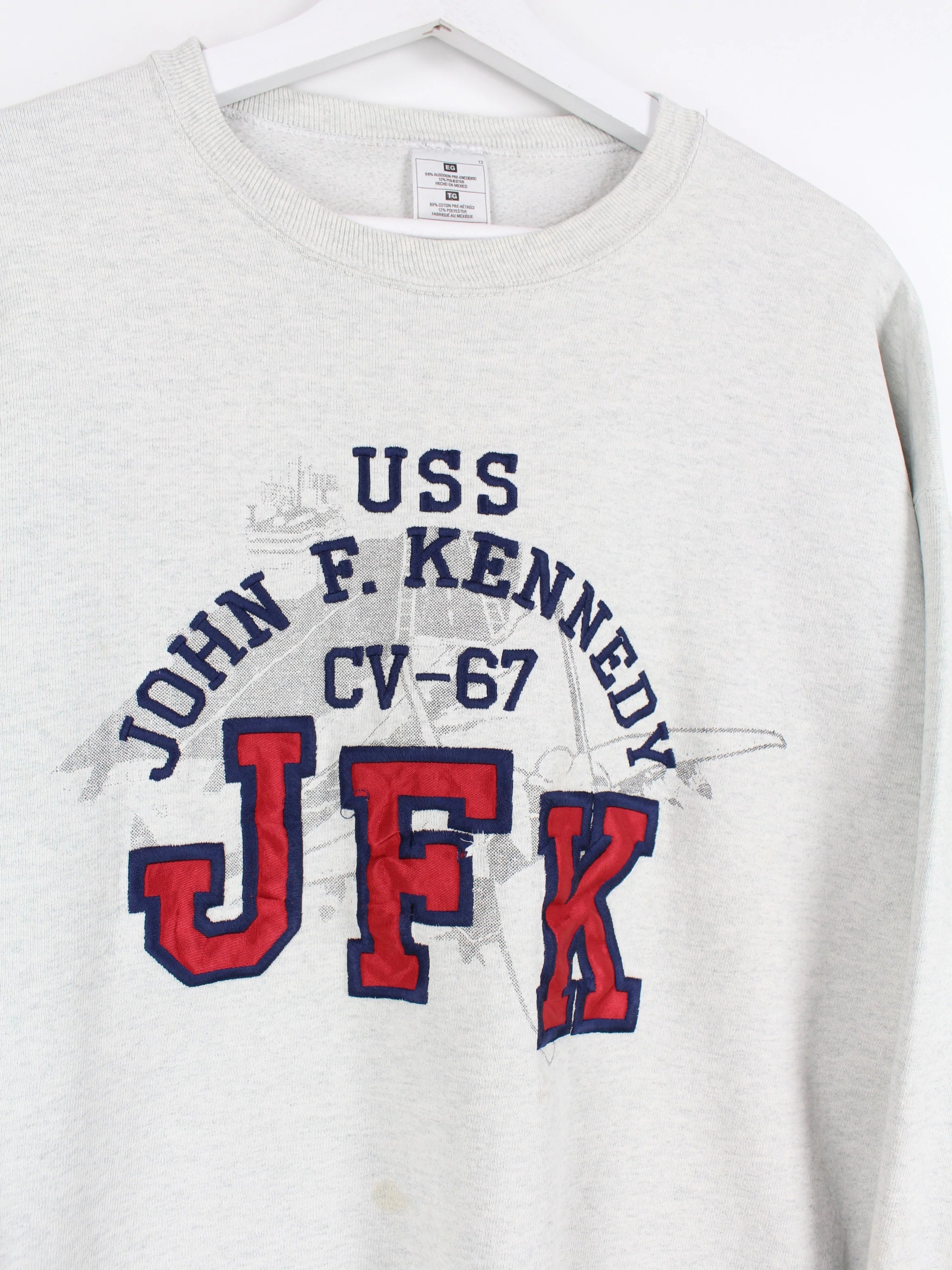 Pull vintage en coton épais avec broderie John F. Kennedy.