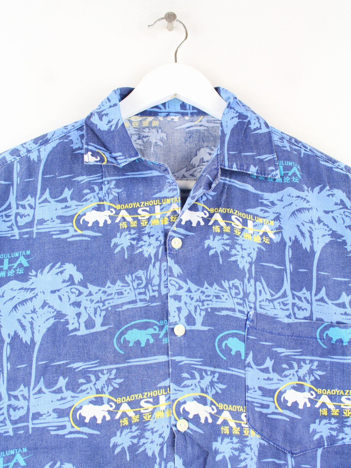 Blue vintage casual shirt in size S. It is made of cotton and is in very good condition.