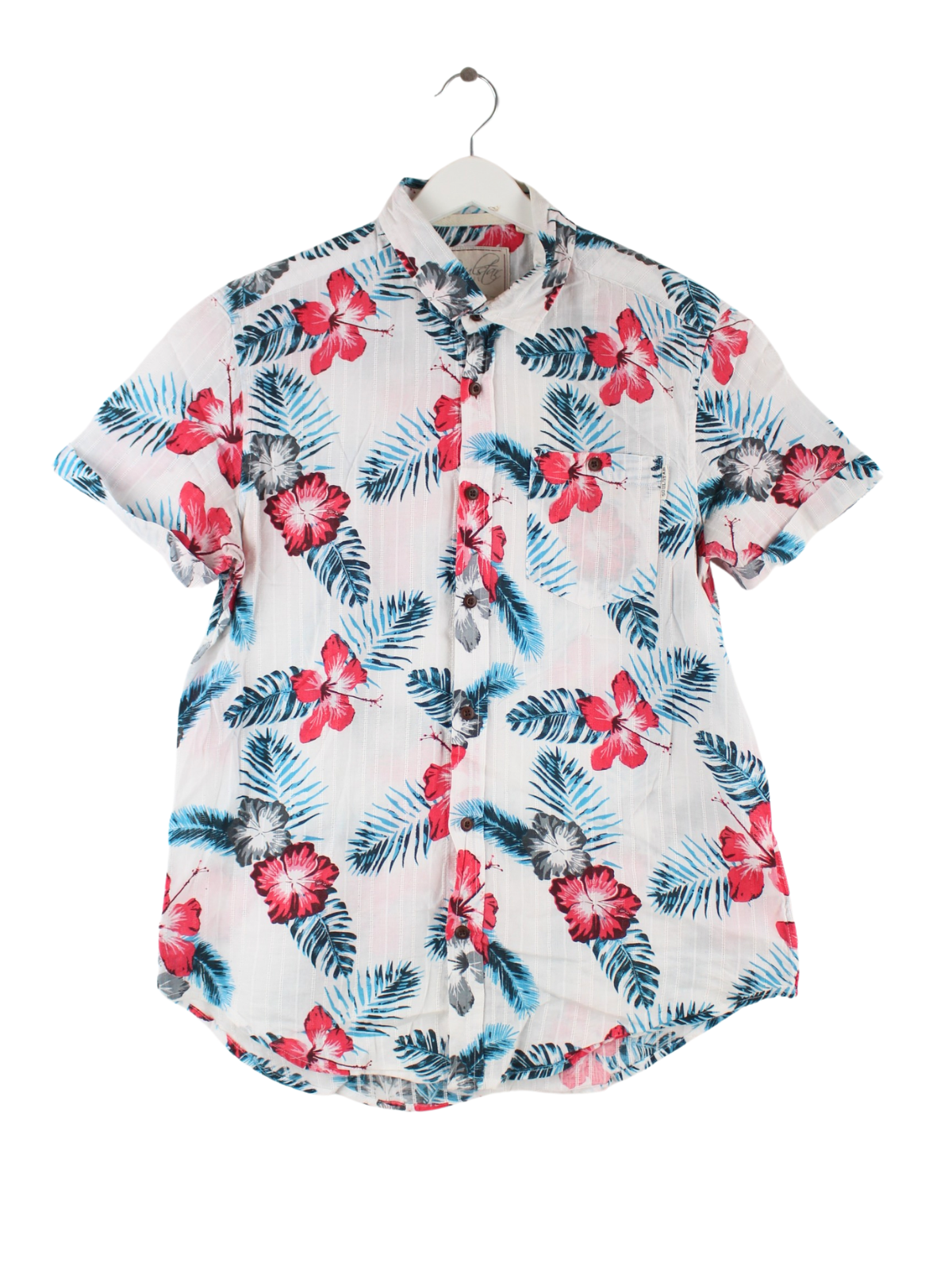 Vintage casual shirt in size M. It is made of cotton and comes in white.