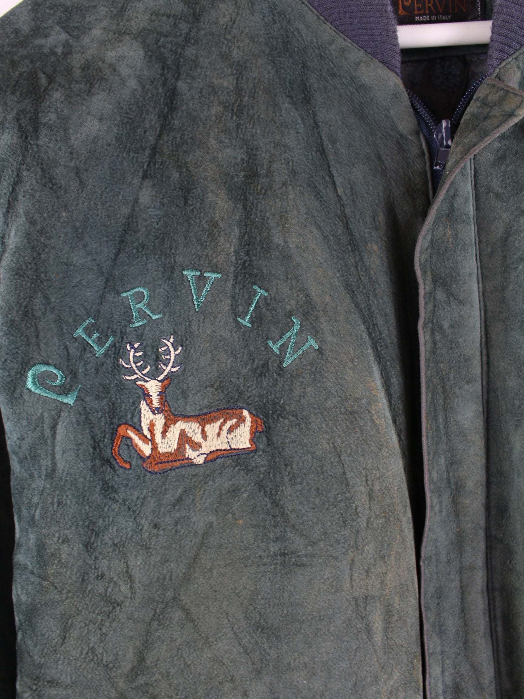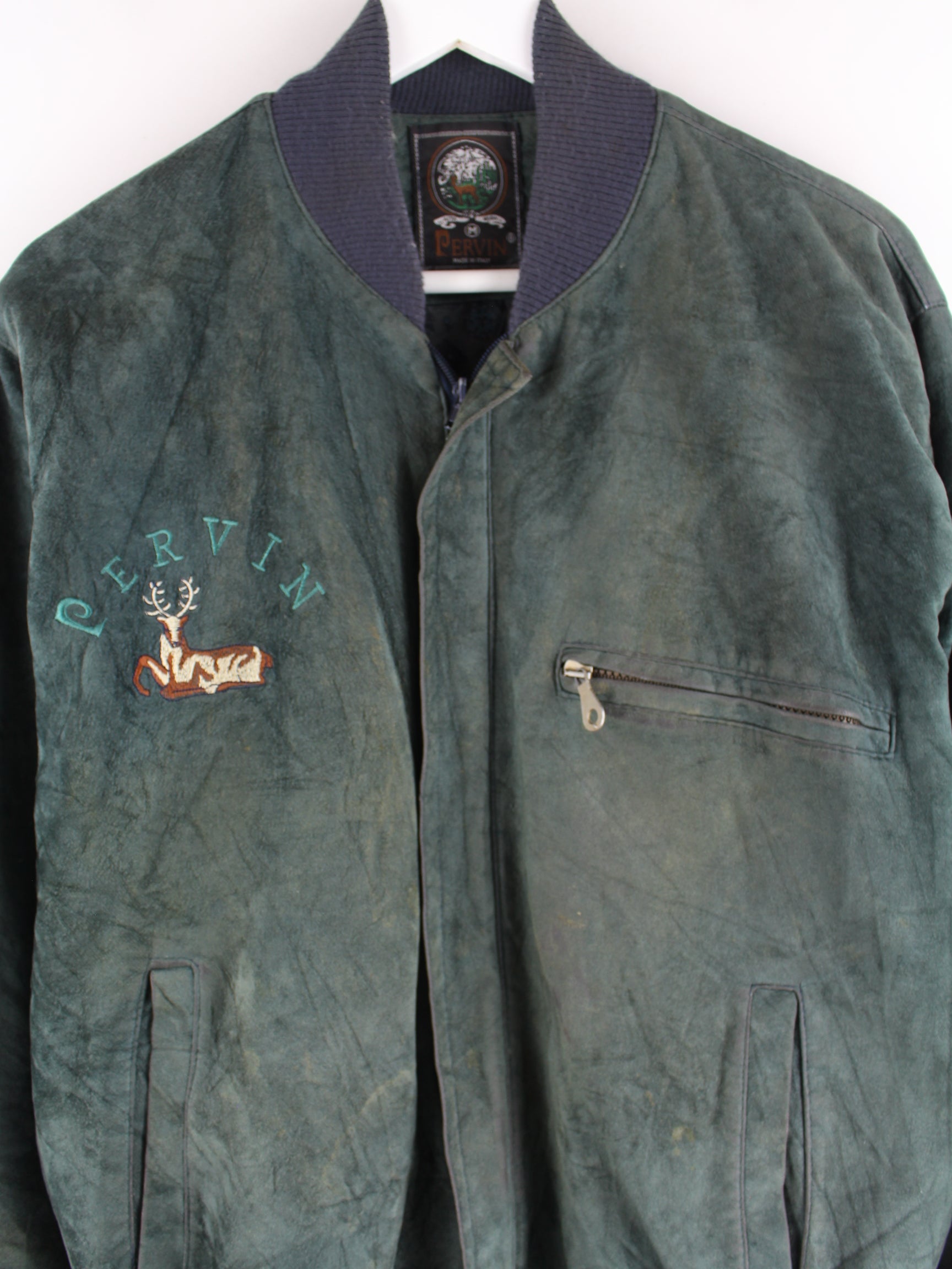 Vintage jacket in size M. It is made of synthetic material and comes in green.