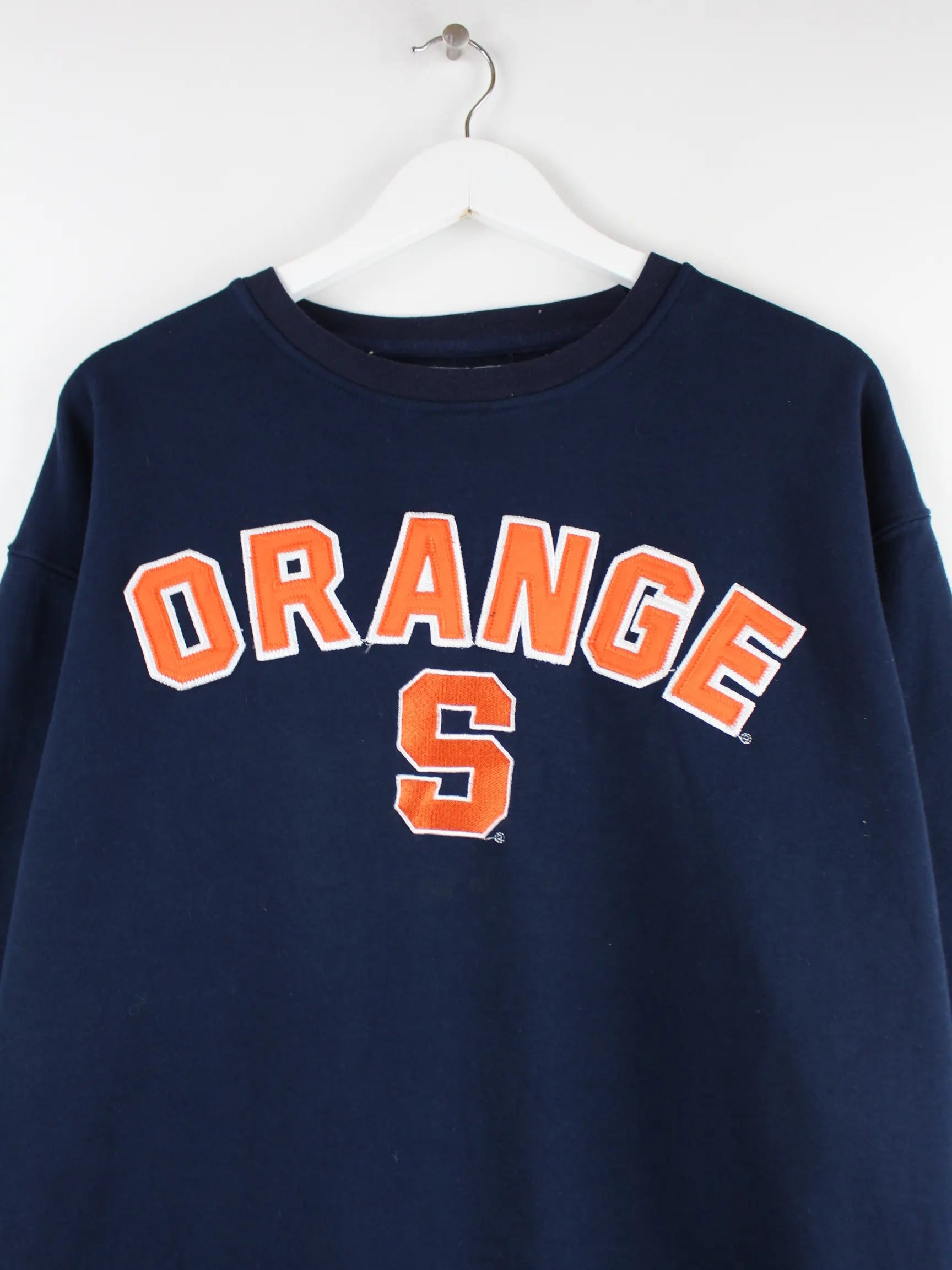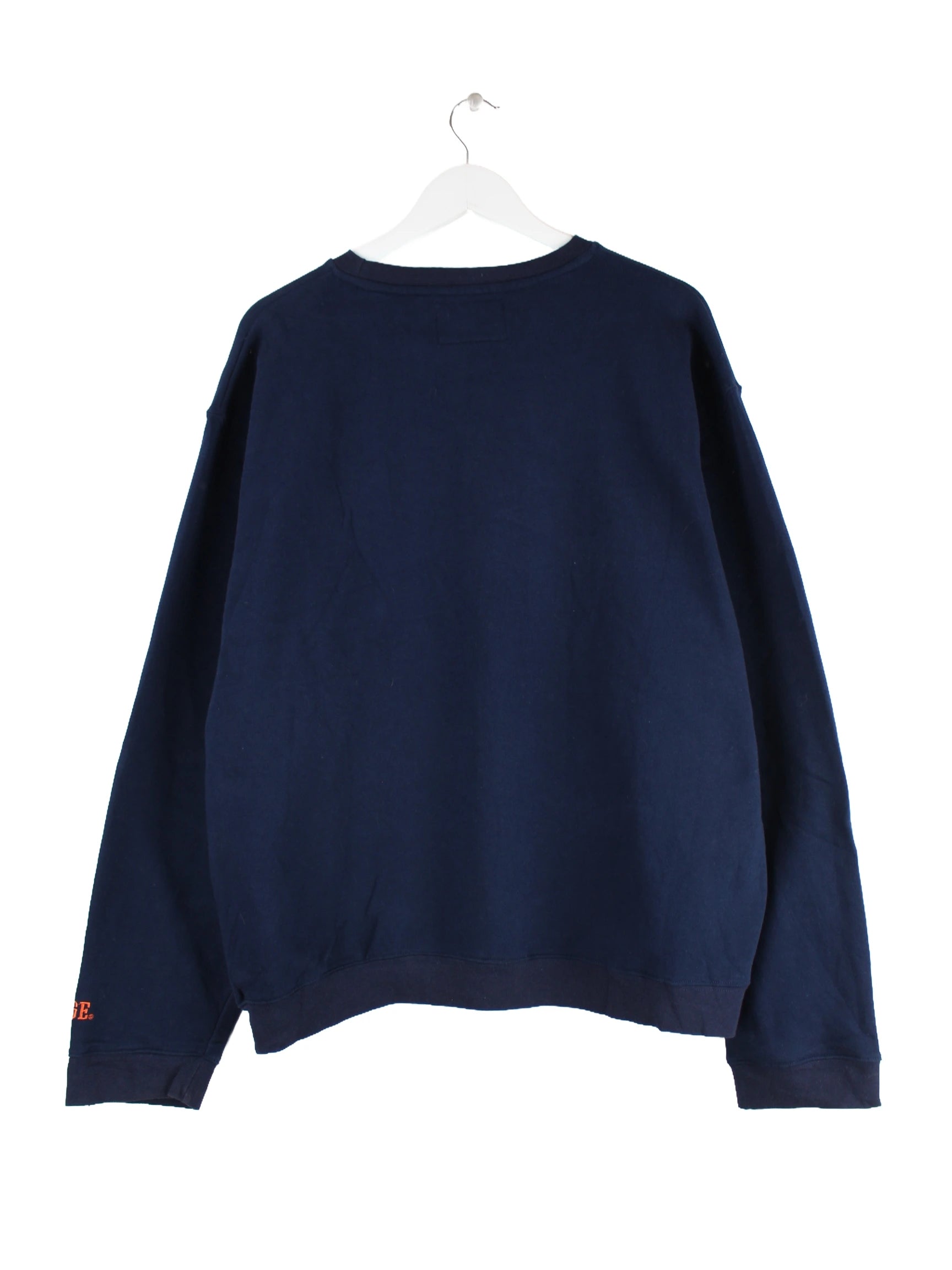 Blauer Vintage Sweater in Größe XXL. Er ist aus einer Baumwollmischung gemacht und in sehr gutem Zustand bei uns vorrätig. Mit chiquem Orange Print.