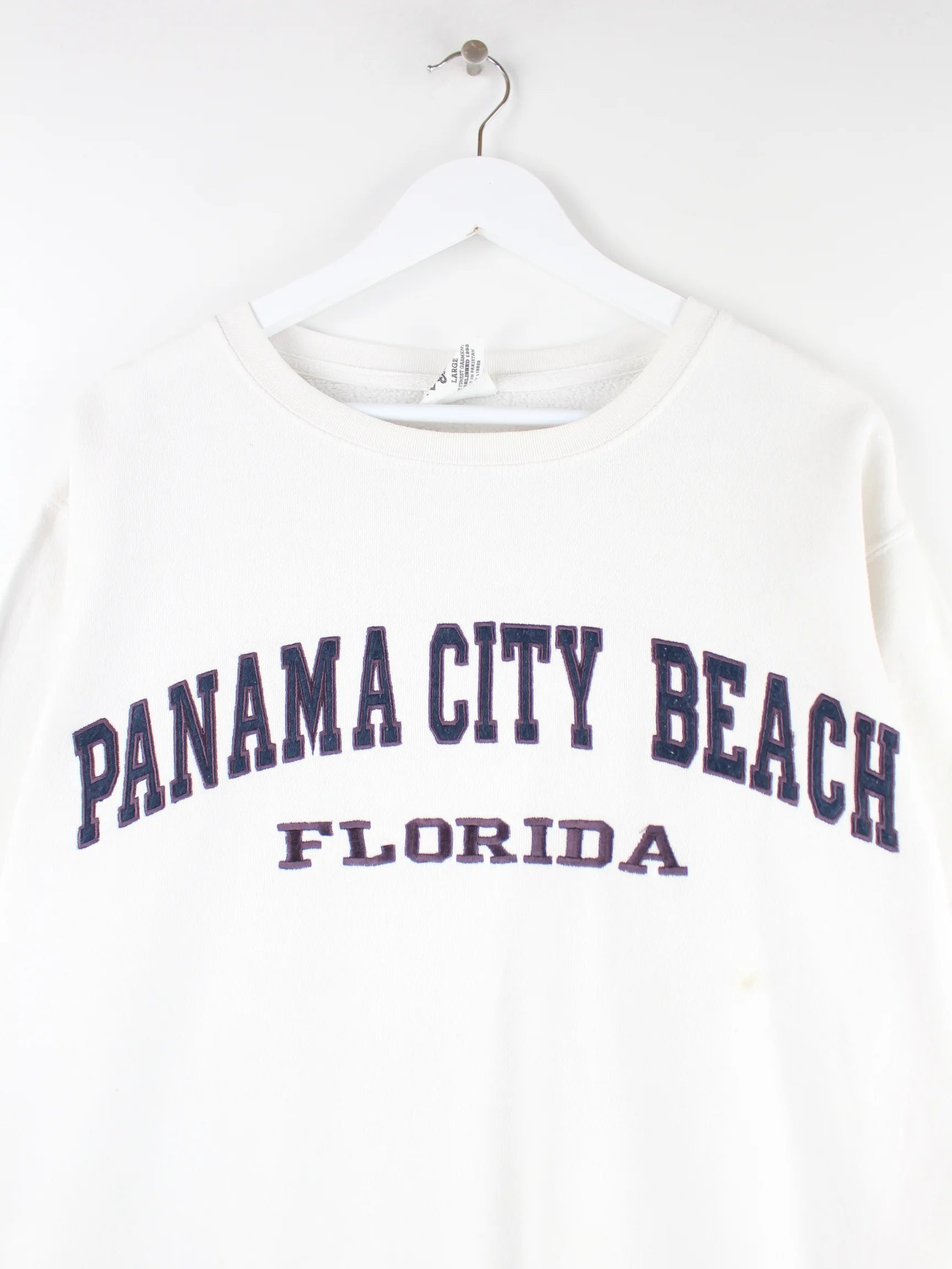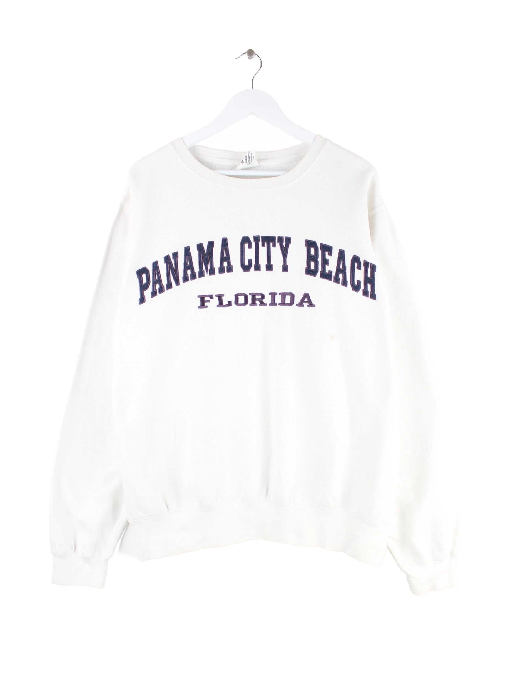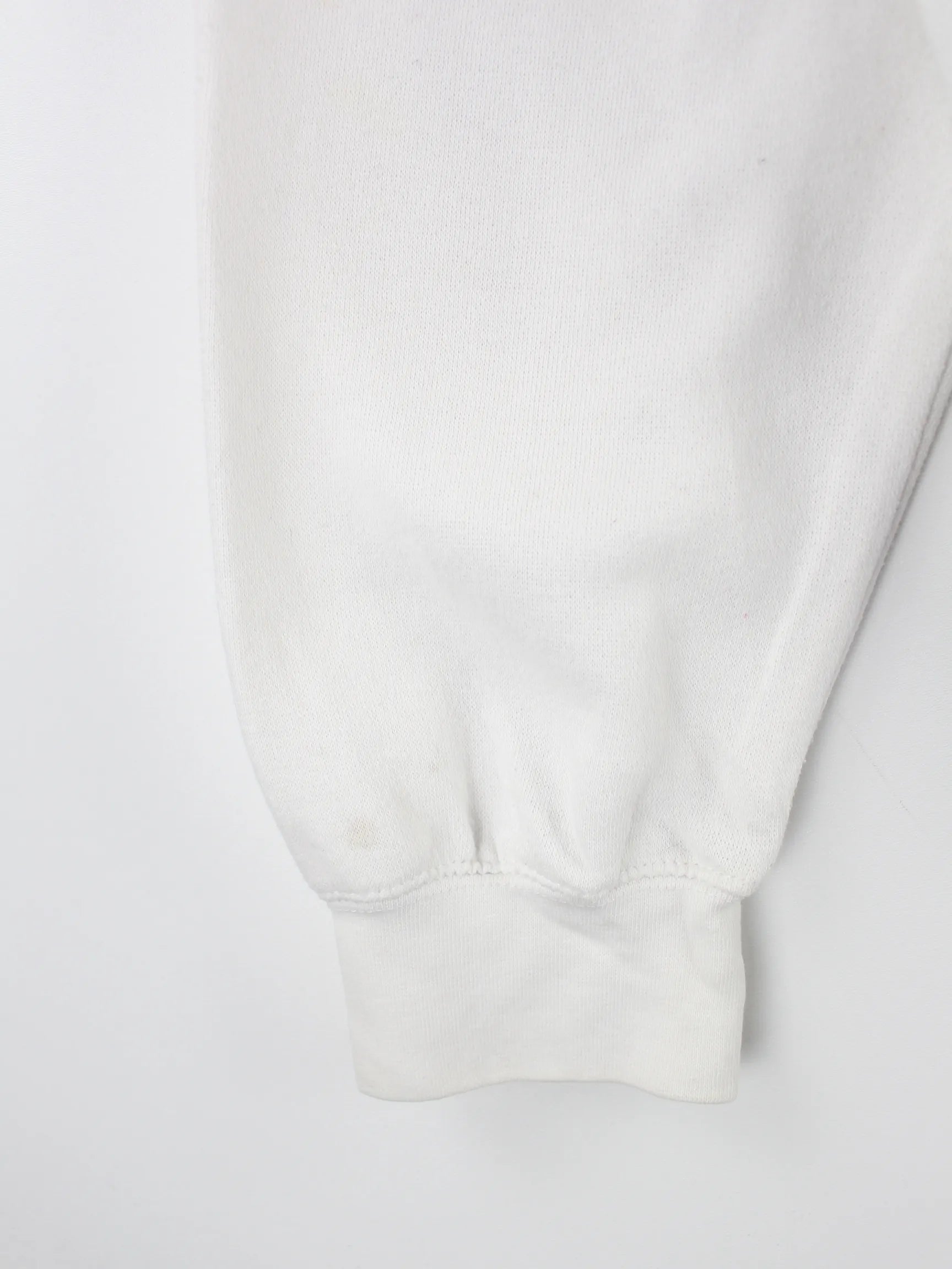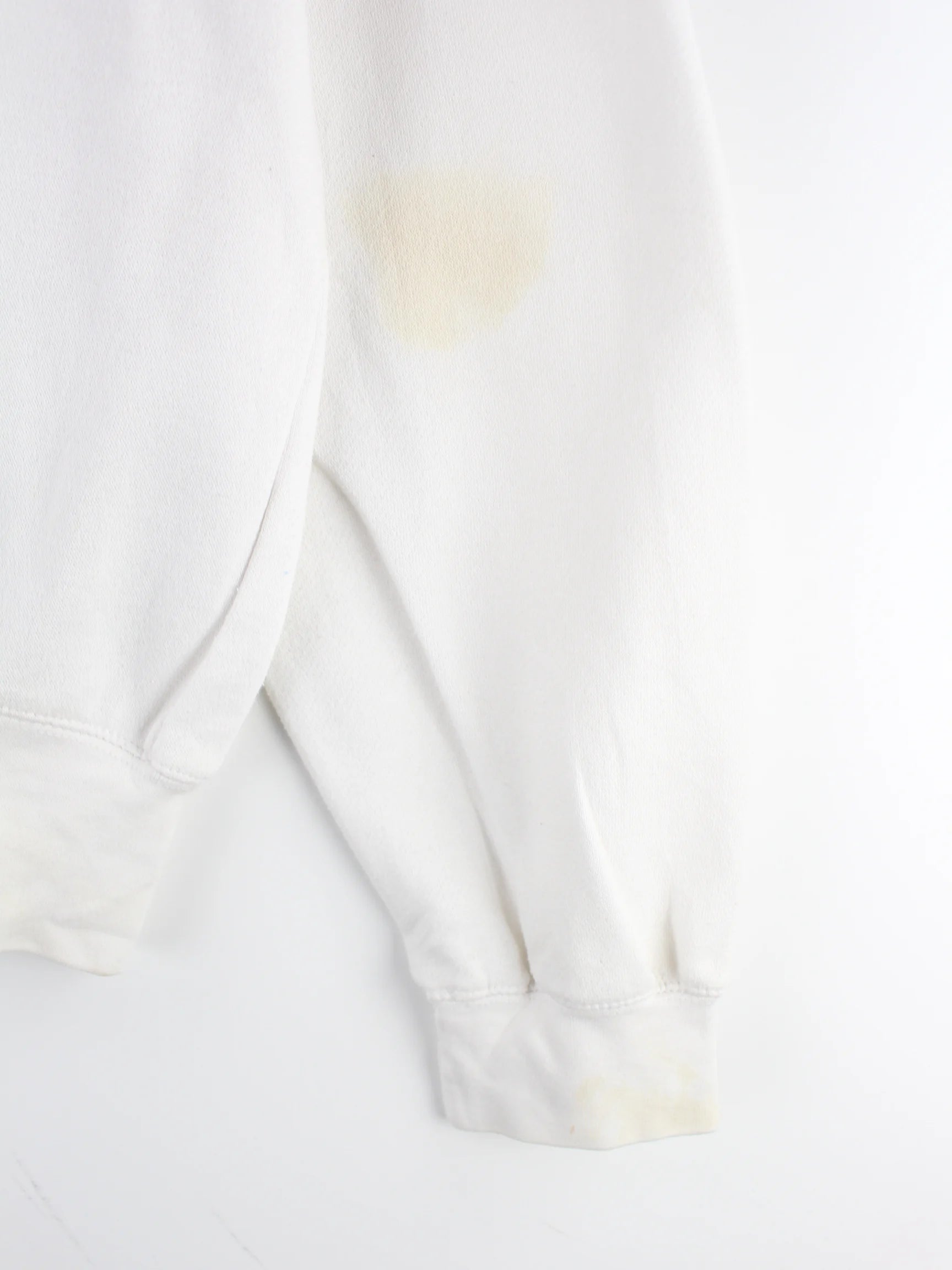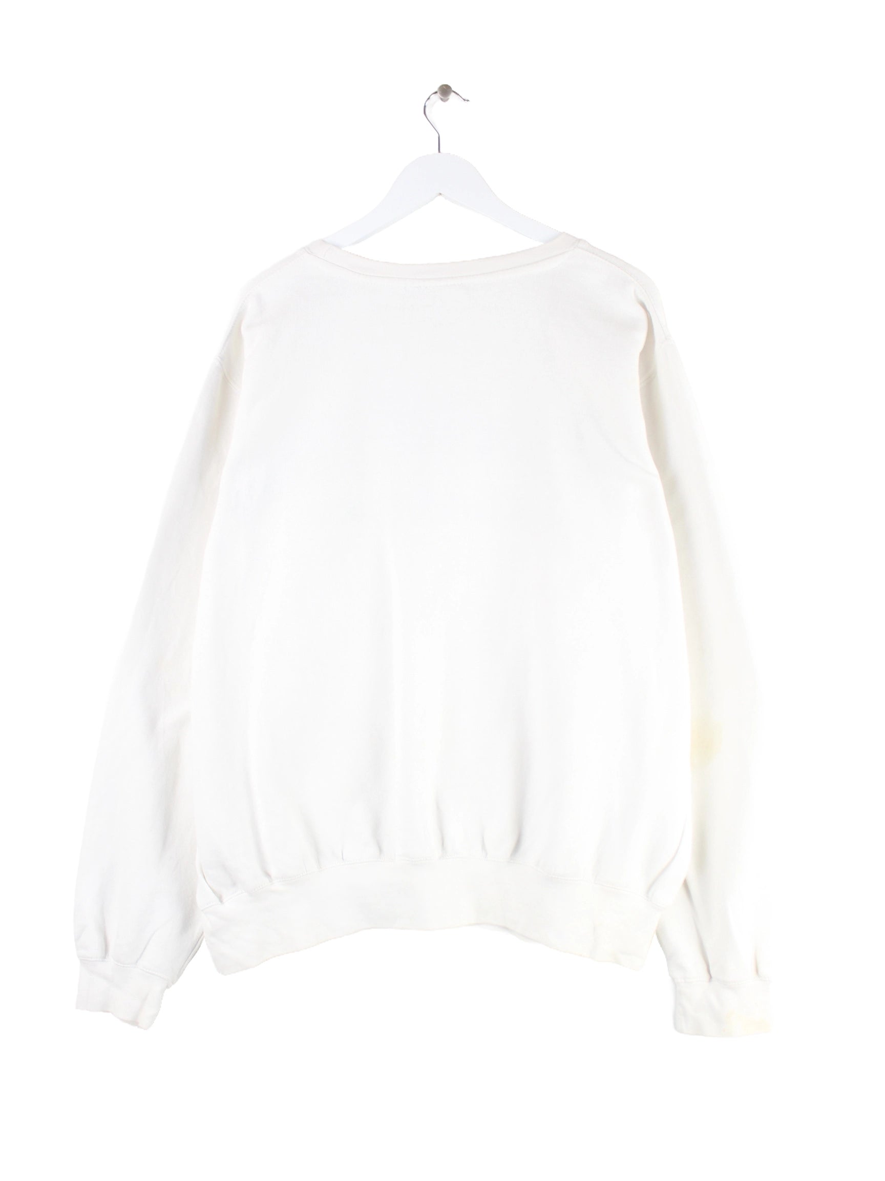 Vintage Sweater in Größe L. Er ist aus einer Baumwollmischung hergestellt und in Weiß vorrätig.
