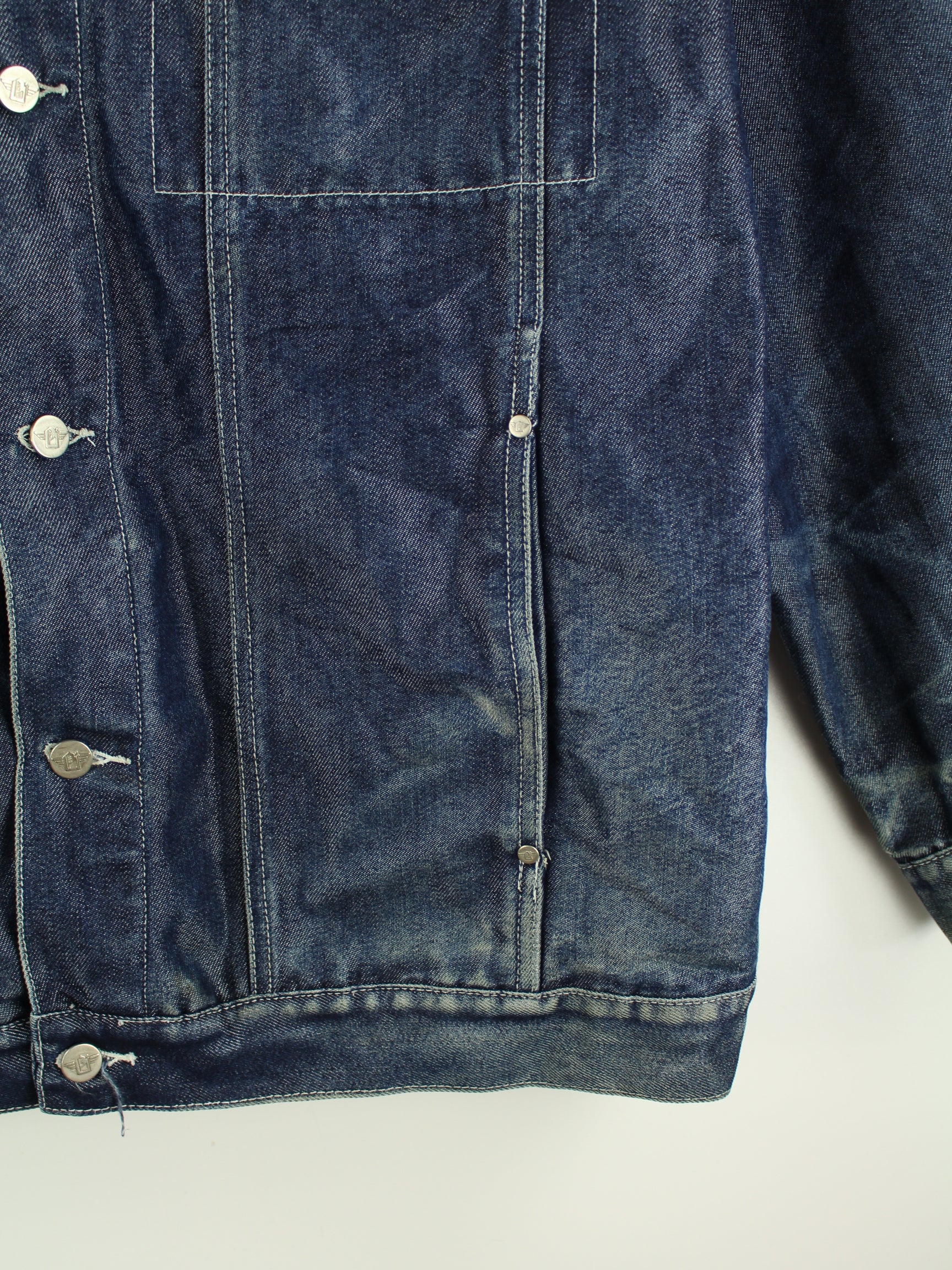 Blue vintage denim jacket with embroidered motifs in size XXL. It is made of cotton and is available from us in good condition.