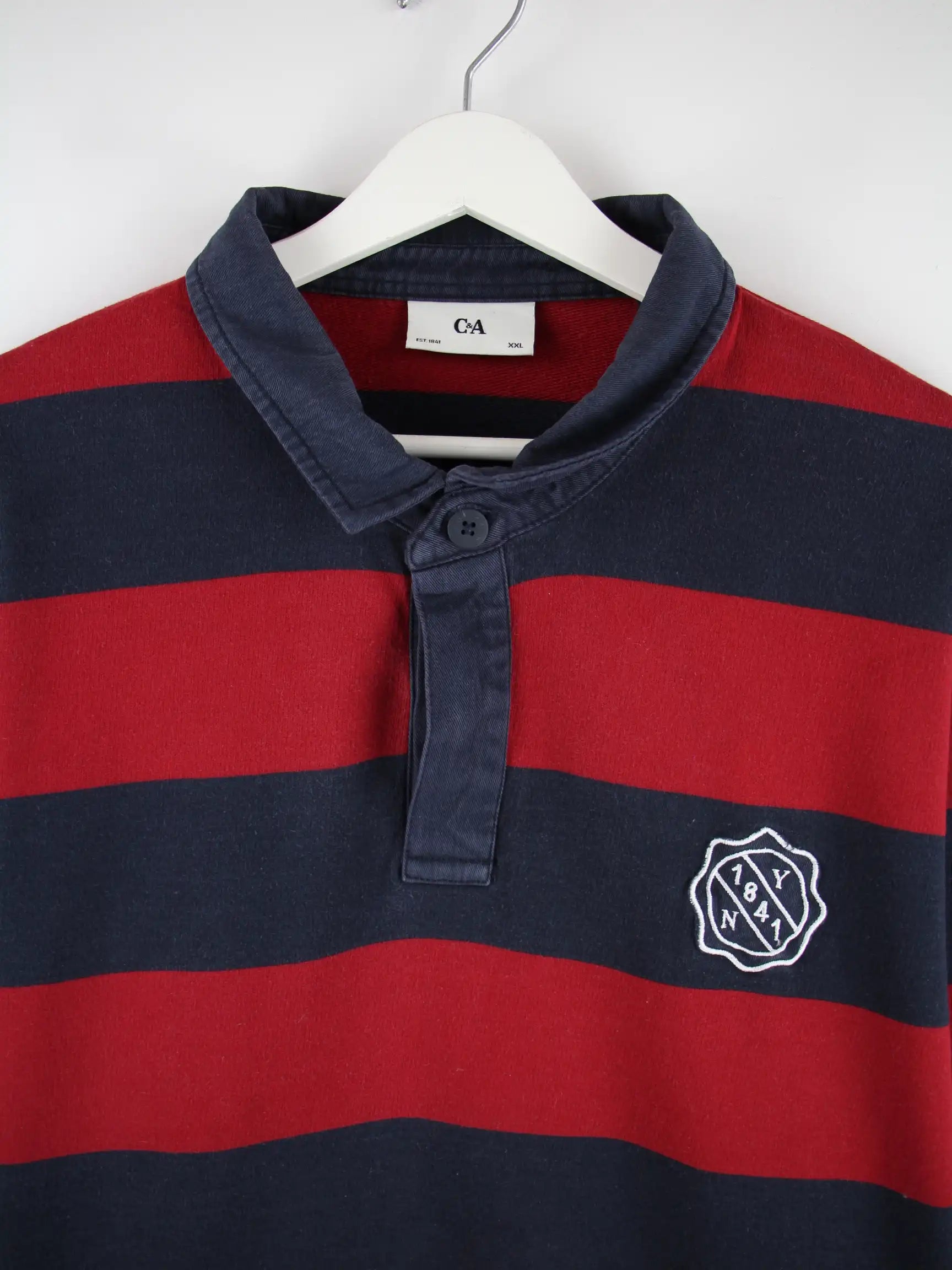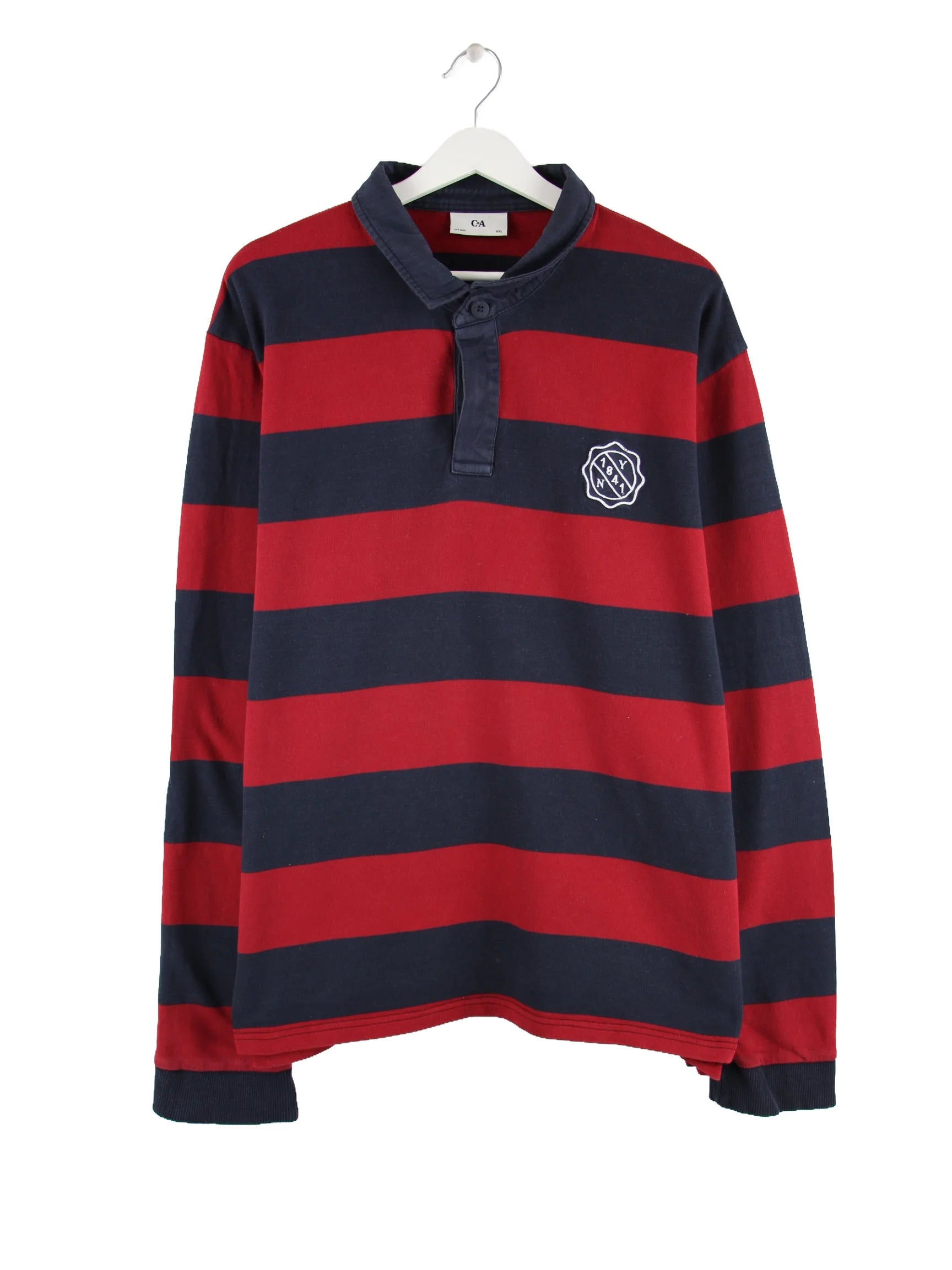 Vintage Stripe Langarm Polo Blau XXL