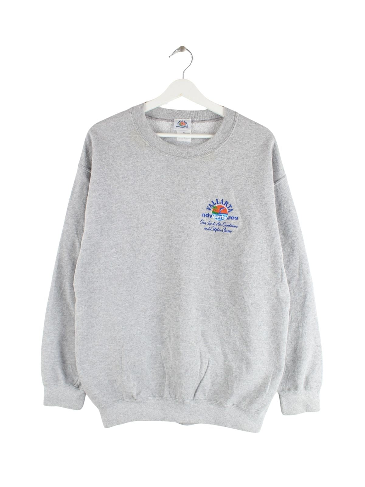 Grauer Vintage Sweater in Größe M. Er ist aus einer Baumwollmischung angefertigt und in gutem Zustand in Stock.