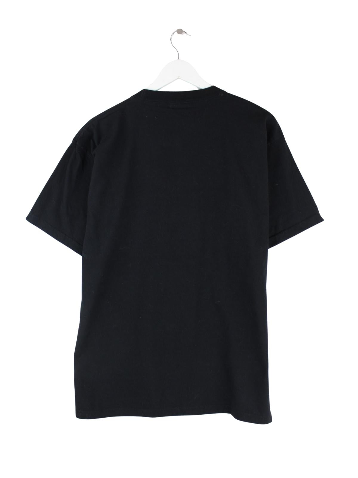 Schwarzes Vintage T-Shirt in Größe L. Es ist aus Baumwolle angefertigt und in sehr gutem Zustand bei uns vorrätig. Mit schickem Obama Print.