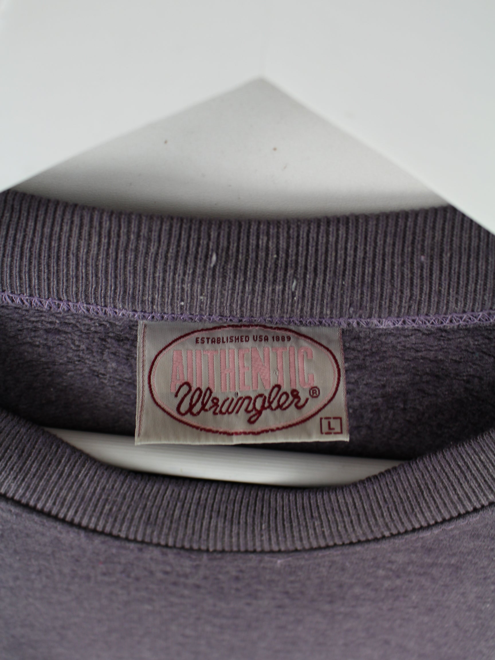 Grey sweater by Wrangler from the 90's in size L. It is made of a cotton blend and is in good condition.