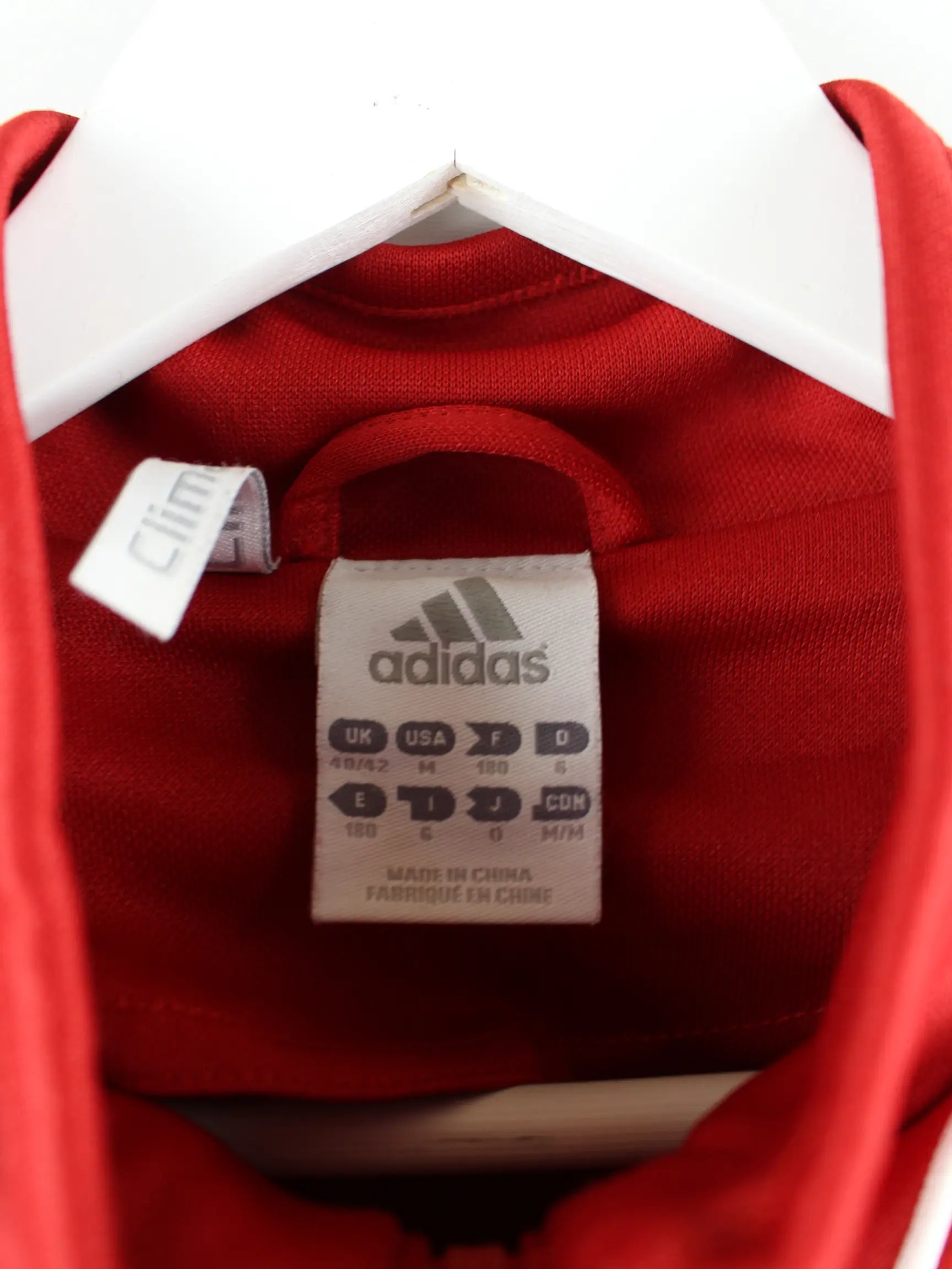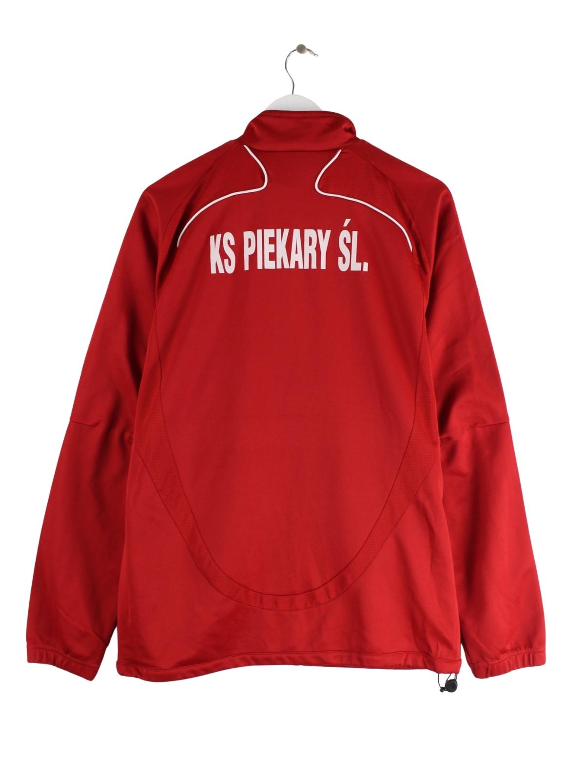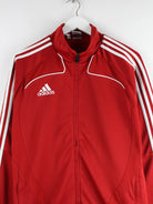 Trainingsjacke der Brand Adidas in Größe XL. Sie ist aus Synthetik angefertigt und in Rot bei uns zu bekommen. Mit schickem 3-Stripes Print.