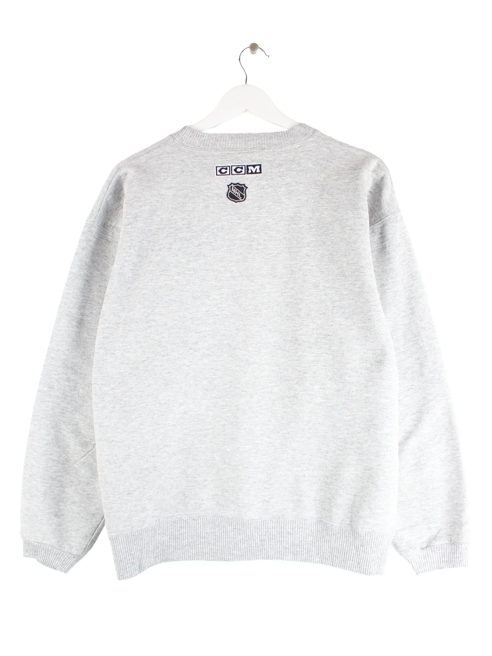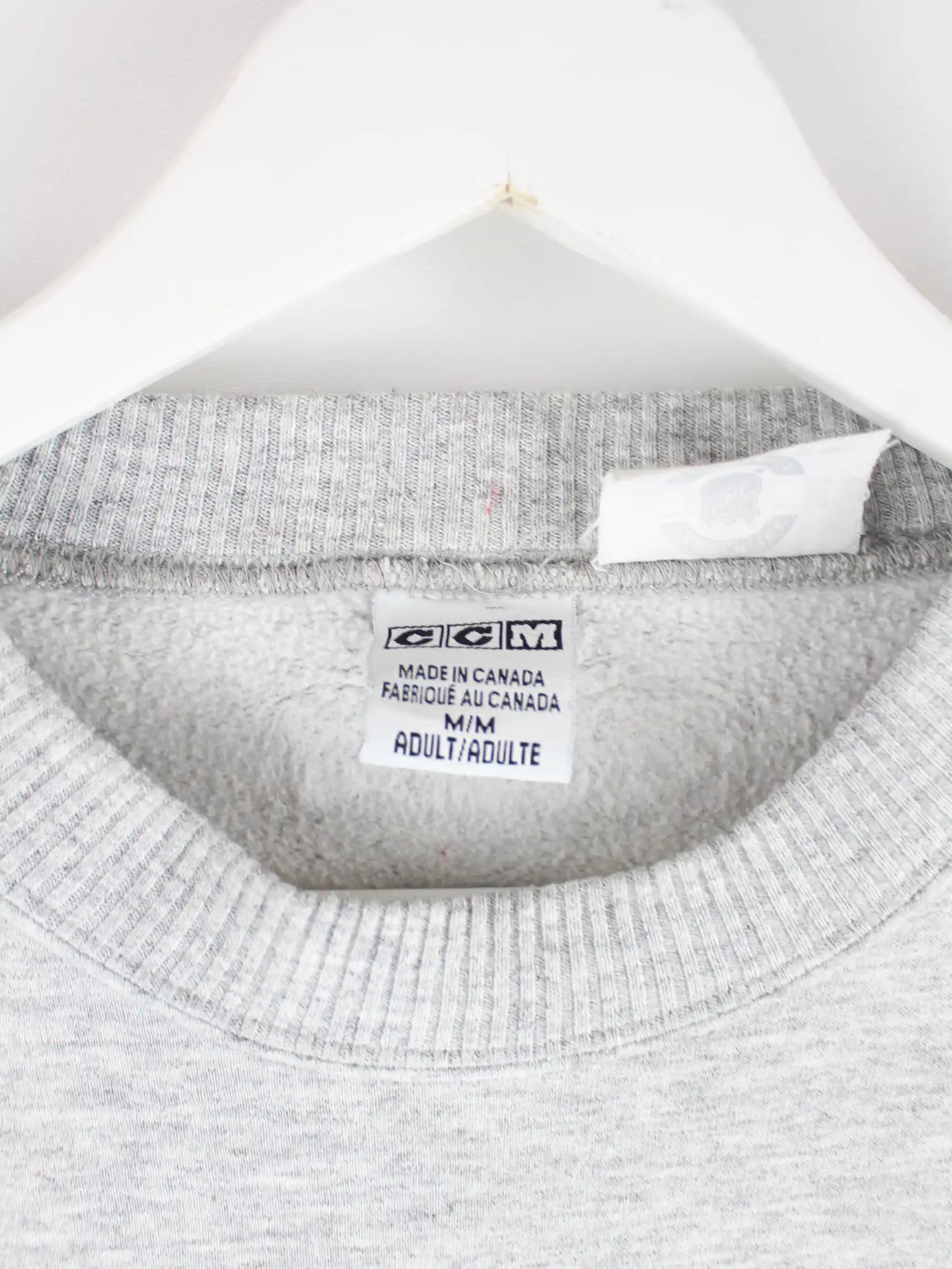Grauer Sweater vom Brand CCM in Größe M. Er ist aus einer Baumwollmischung gefertigt und in sehr gutem Zustand lieferbar. Mit seltenem Hockey Print.
