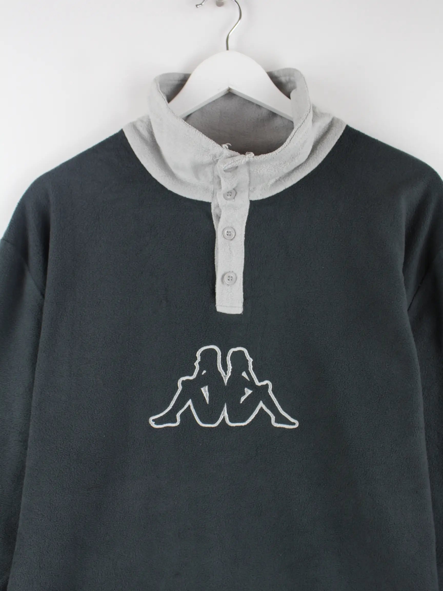 Leichte Jacke vom Brand Kappa in Größe XL. Sie ist aus gemütlichem Fleece produziert und in Grau vorrätig.