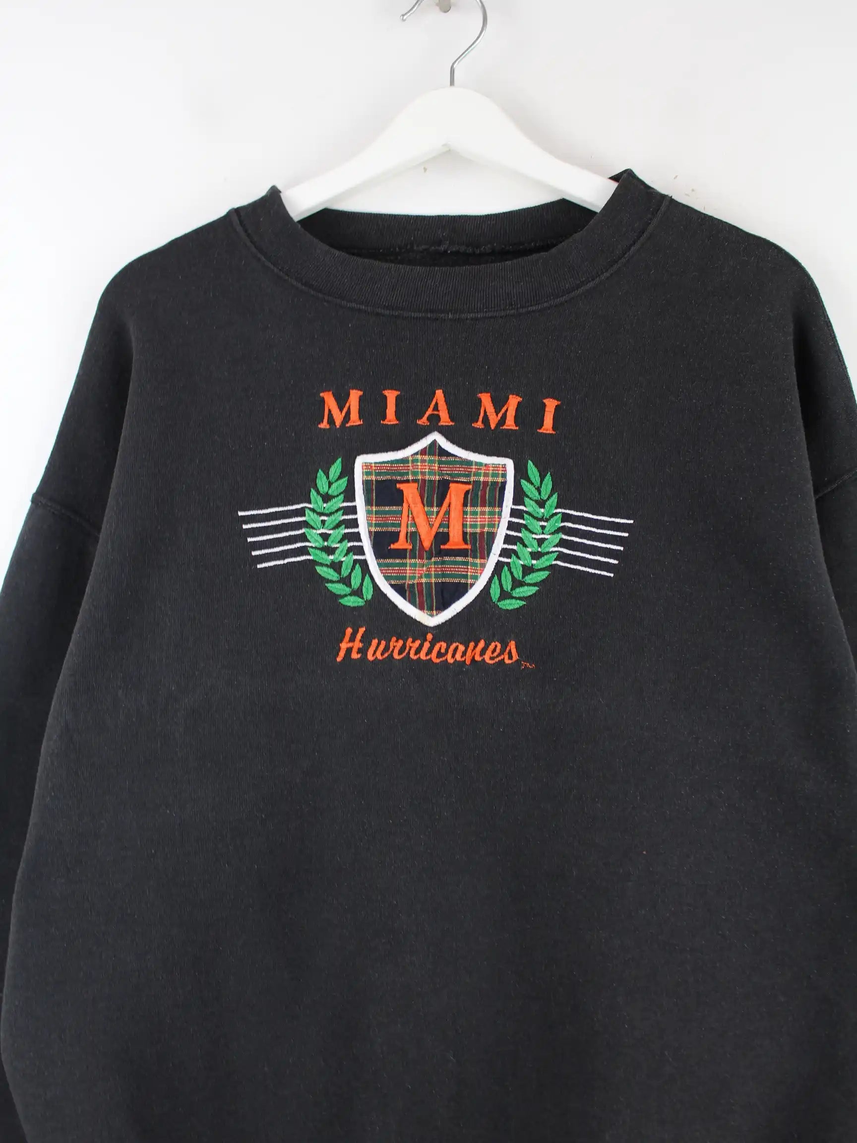 Vintage 90s Miami Hurricanes Embroidered Sweater Grau L