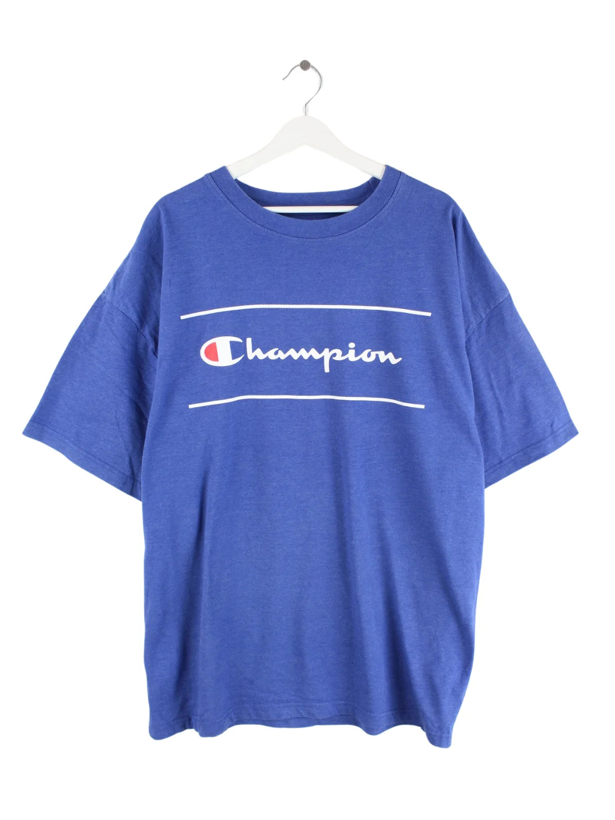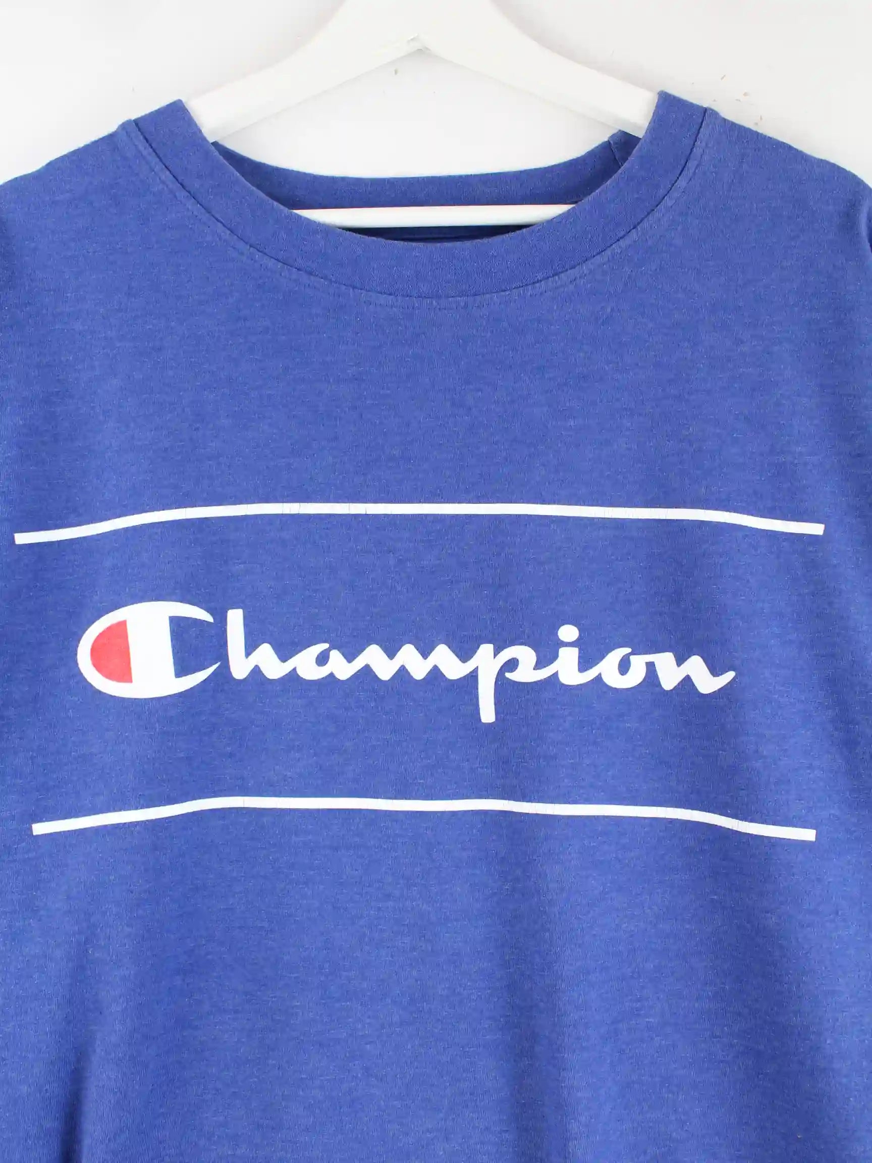 T-Shirt des Labels Champion in Größe 3XL. Es ist aus Baumwolle hergestellt und in Blau vorrätig. Mit tollem Logo Print.