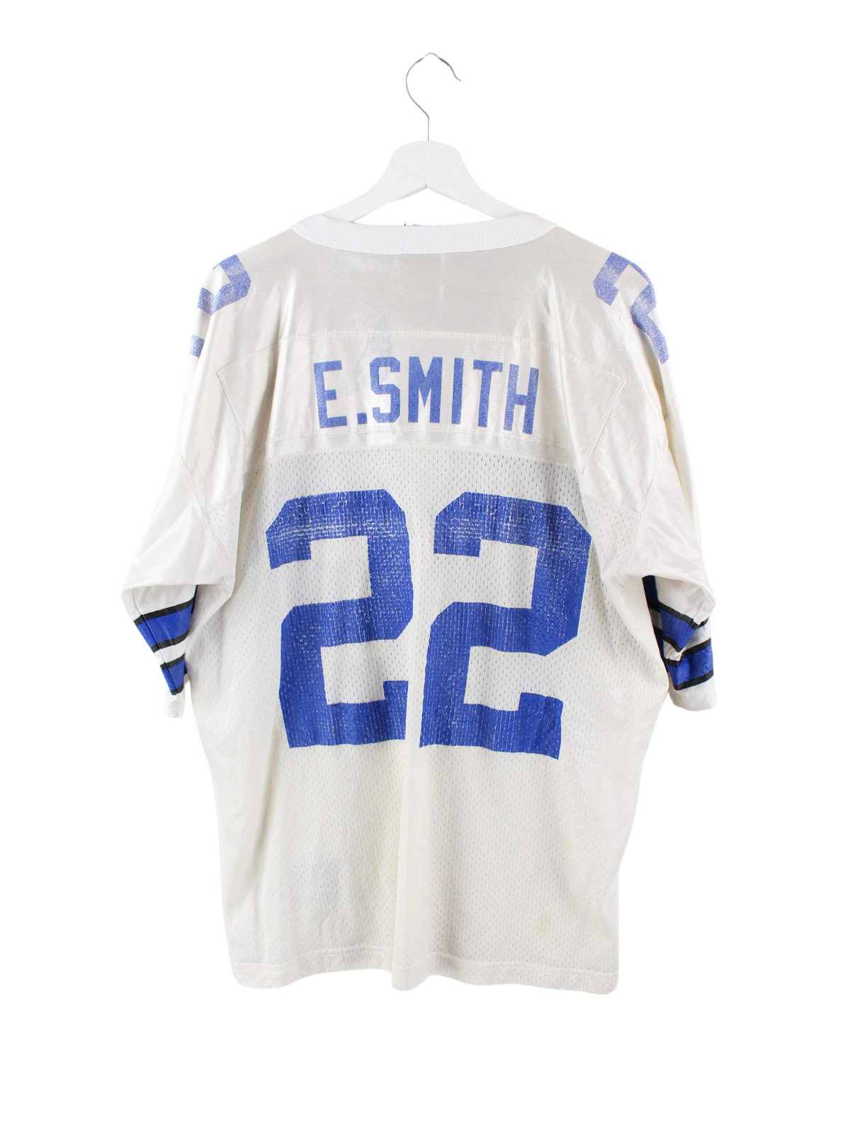 White Dallas Cowboys Starter NFL Jersey by Emmitt Smith with the number 22.