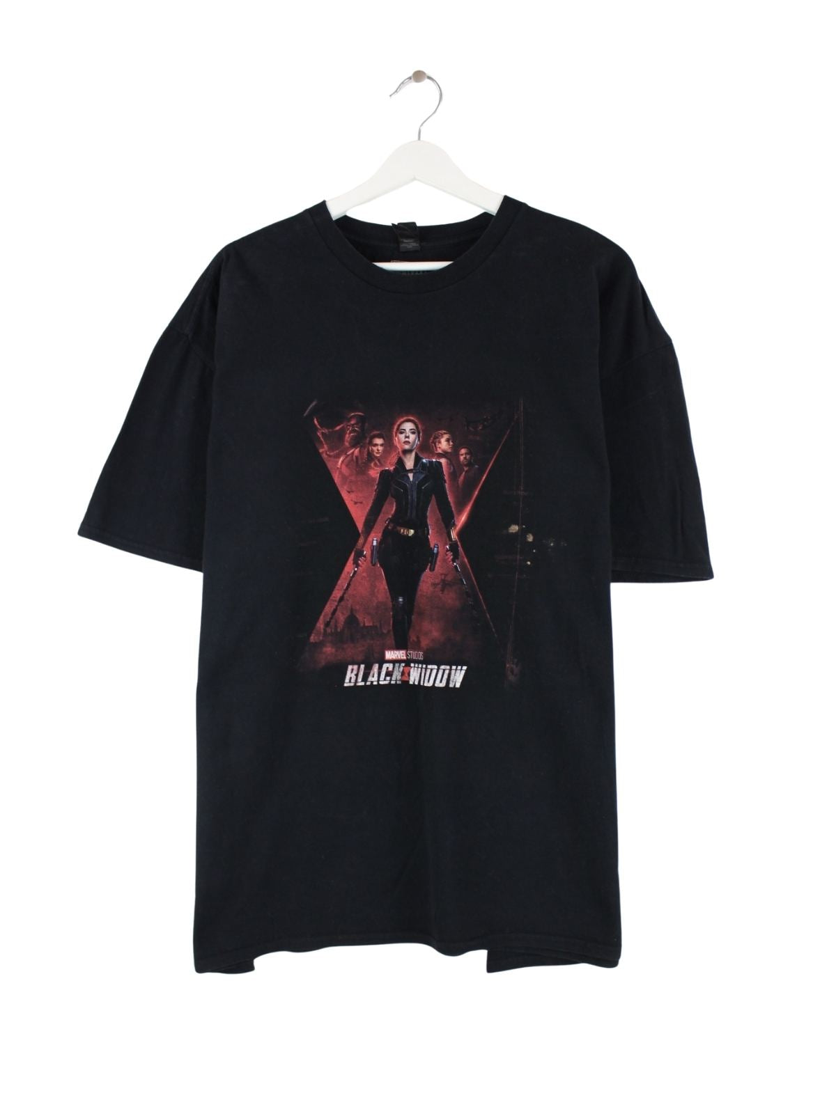 T-Shirt der Brand Marvel in Größe XXL. Es ist aus Baumwolle hergestellt und in Schwarz vorrätig. Mit seltenem Widow Print.